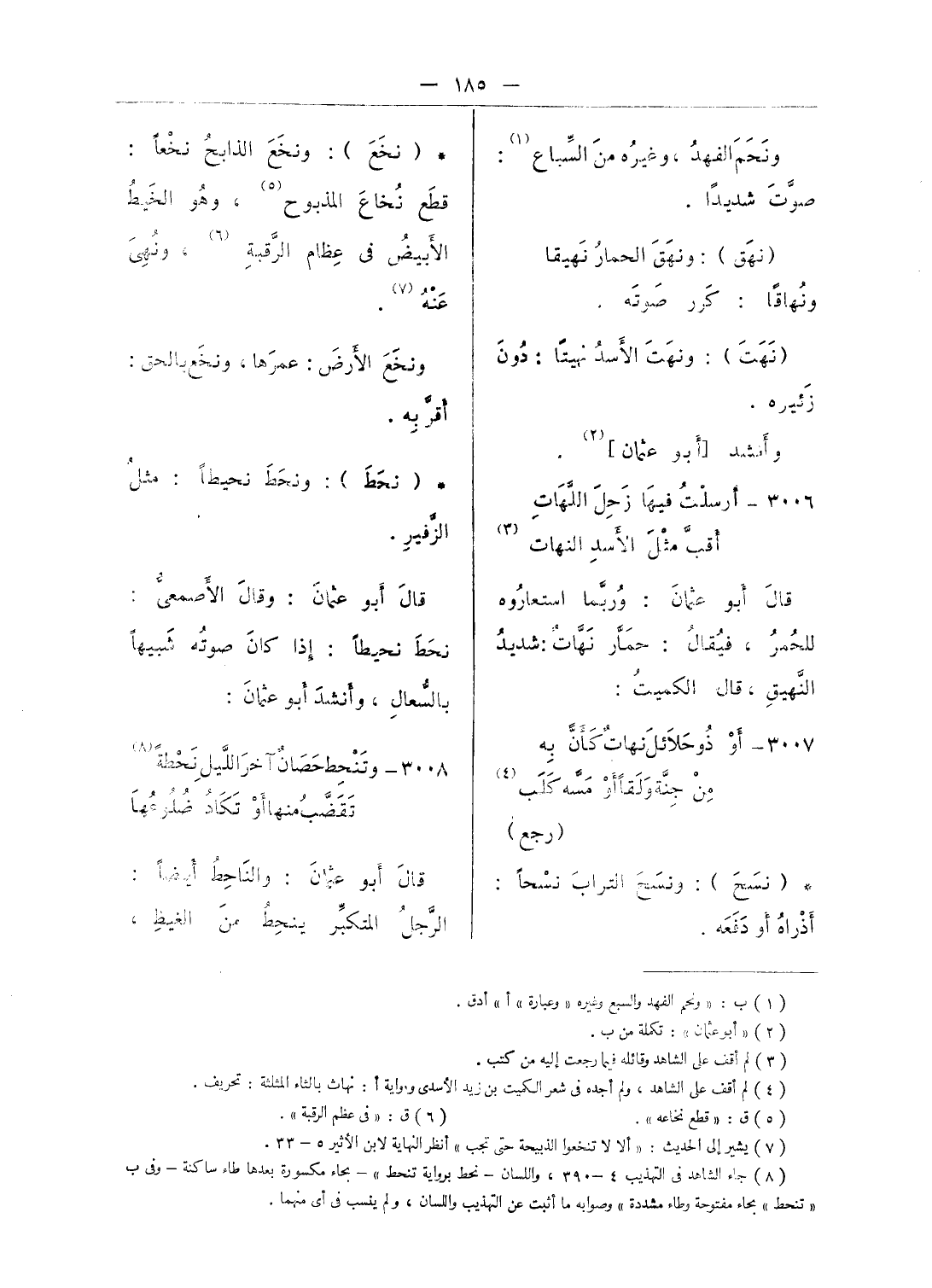 (¬7) يشير إلى الحديث: «ألا لا تنخعوا الذبيحة حتى تجب» أنظر النهاية لابن الأثير 5 - 33.