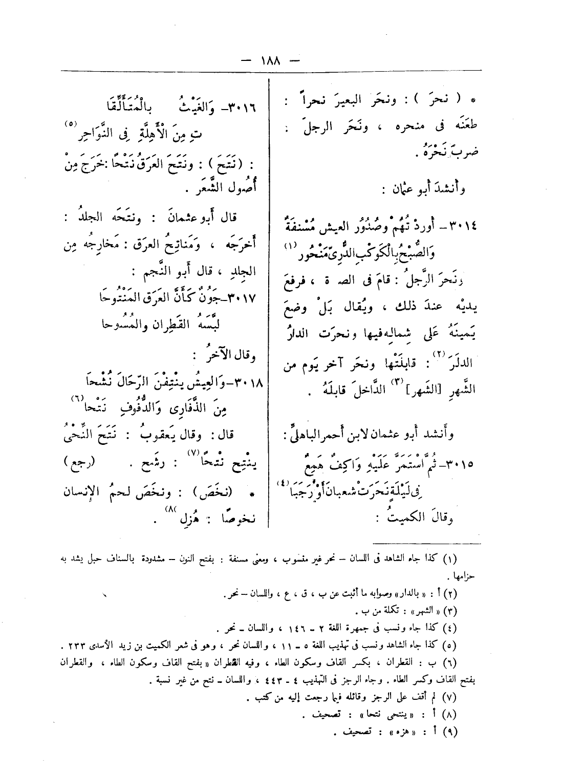 (¬5) كذا جاء الشاهد ونسب فى تهذيب اللغة 5 - 11، واللسان نحر، وهو فى شعر الكميت بن زيد الأسدى 233.