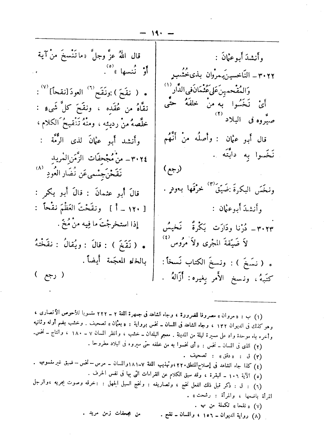 (¬8) رواية الديوان - 156، واللسان - نقح.