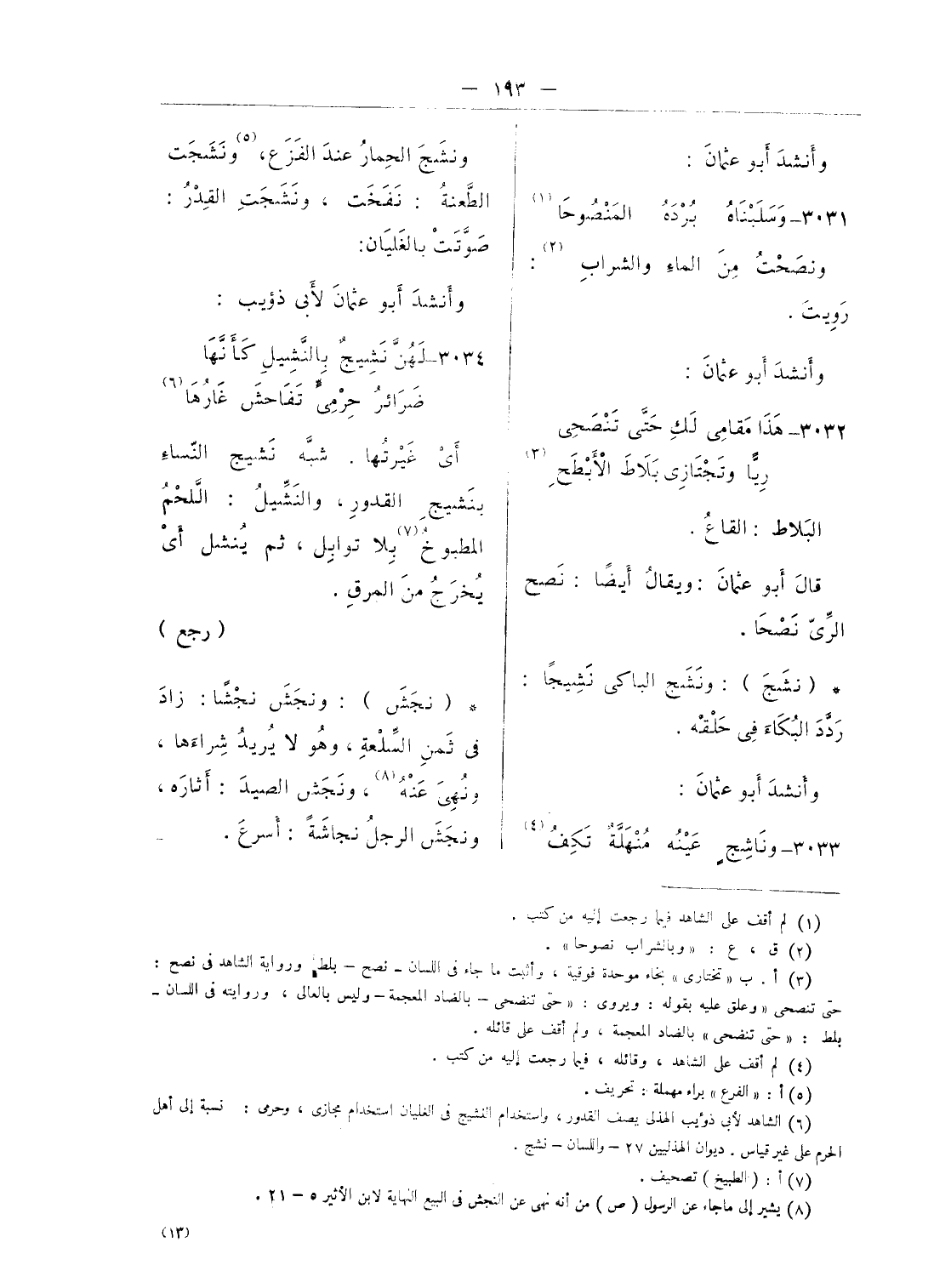 (¬6) الشاهد لأبى ذؤيب الهذلى يصف القدور، واستخدام النشيج فى الغليان استخدام مجازى، وحرمى: نسبة إلى أهل الحرم على غير قياس. ديوان الهذليين 27 - واللسان - نشج.