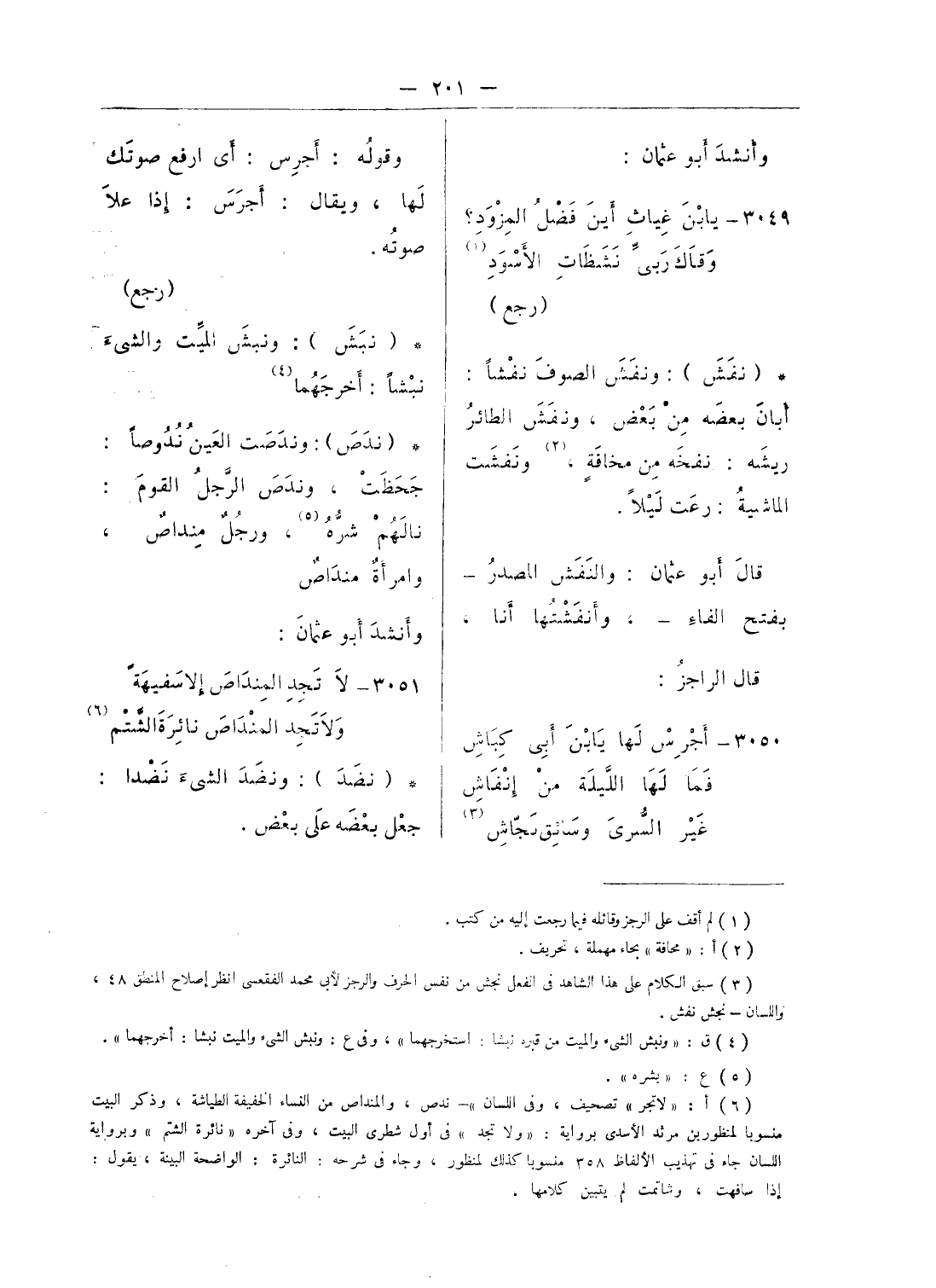 (¬3) سبق الكلام على هذا الشاهد فى الفعل نجش من نفس الحرف والرجز لأبى محمد الفقعسى انظر إصلاح المنطق 48، واللسان - نجش نفش.