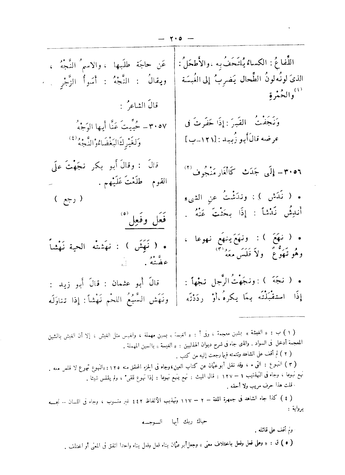 (¬4) كذا جاء الشاهد فى جمهرة اللغة - 2 - 117 وتهذيب الألفاظ 442 غير منسوب، وجاء فى اللسان - نجه برواية: