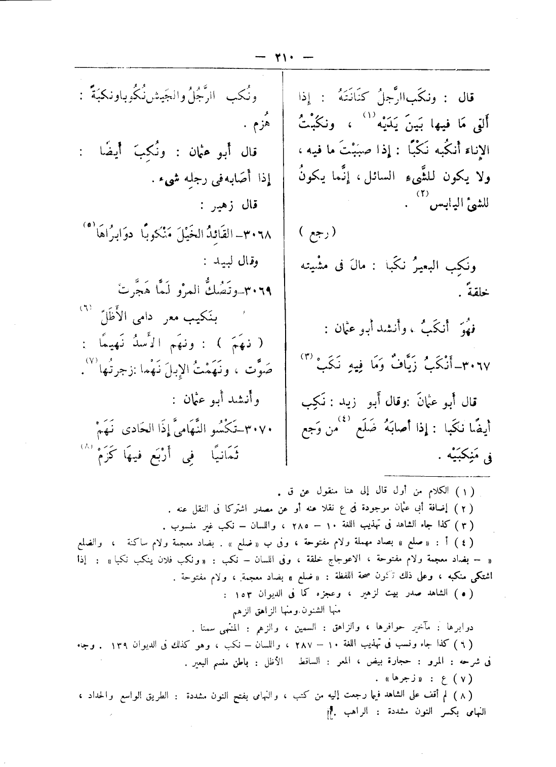 (¬4) أ: «صلع» بصاد مهملة ولام مفتوحة، وفى ب «ضلع». بضاد معجمة ولام ساكنة، والضلع «- بضاد معجمة ولام مفتوحة، الاعوجاج خلقة، وفى اللسان - نكب: «ونكب فلان ينكب نكبا»: إذا اشتكى منكبه، وعلى ذلك تكون صحة اللفظة: «ضلع» بضاد معجمة، ولام مفتوحة.