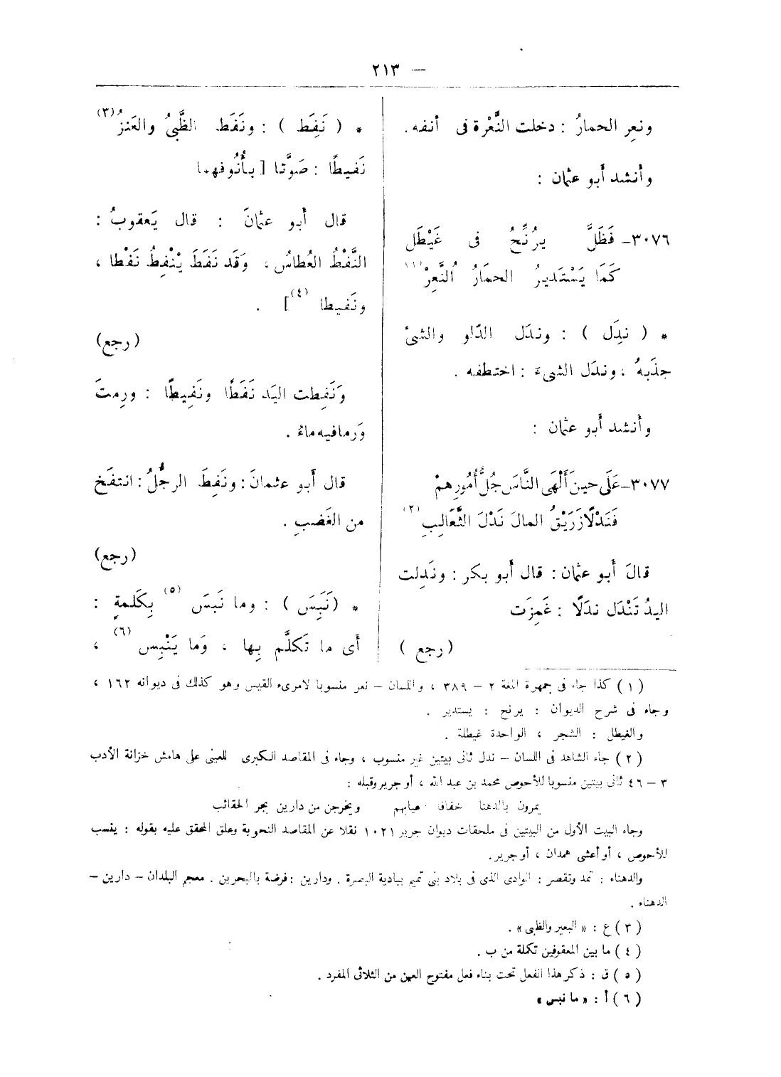 (¬2) جاء الشاهد فى اللسان - ندل ثانى بيتين غير منسوب، وجاء فى المقاصد الكبرى للعيسى على هامش خزانة الأدب 3 - 46 ثانى بيتين منسوبا للأحوص محمد بن عبد الله، أو جرير وقبله: