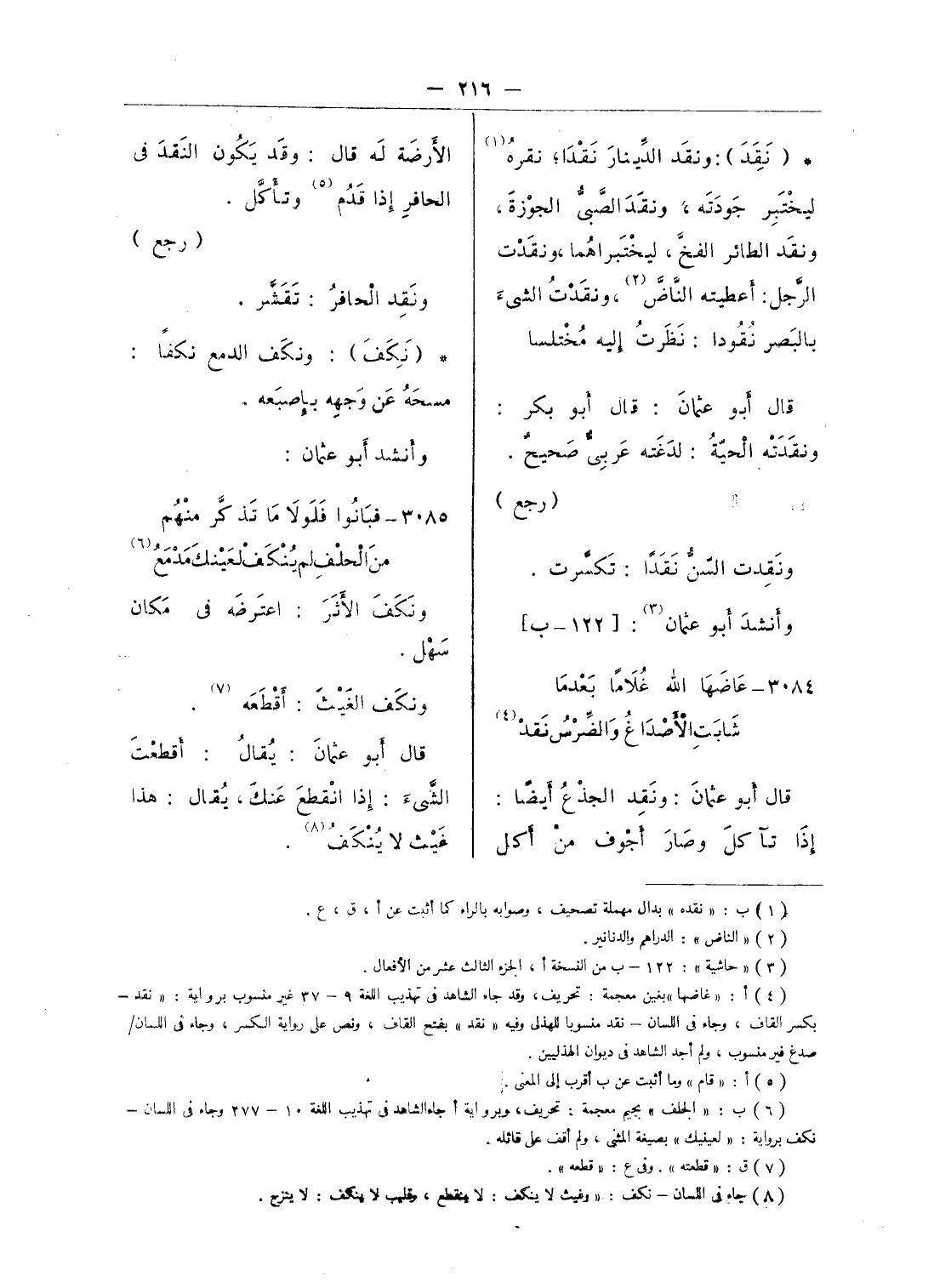 (¬8) جاء فى اللسان - نكف: «رغيث لا ينكف: لا ينقطع» وقليب لا ينكف: لا ينزح.