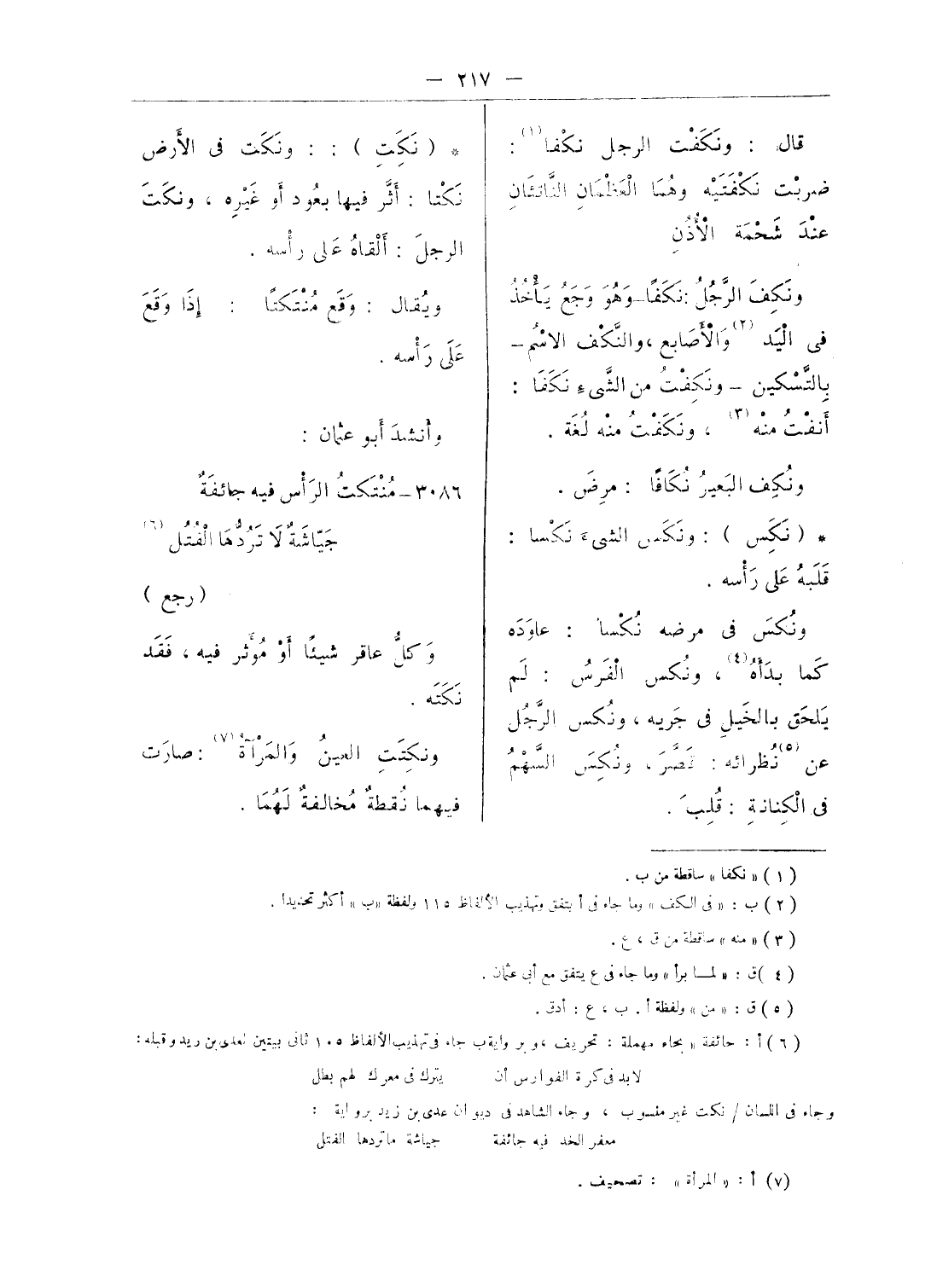 قال: ونكفت الرجل نكفا (¬1):