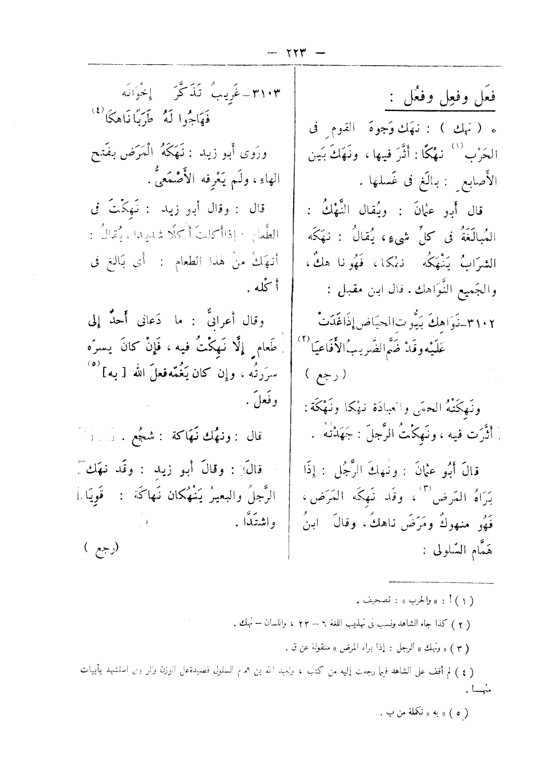 قال: وقال أبو زيد: نهكت فى الطّعام. إذا أكلت أكلا شديدا، يقال: