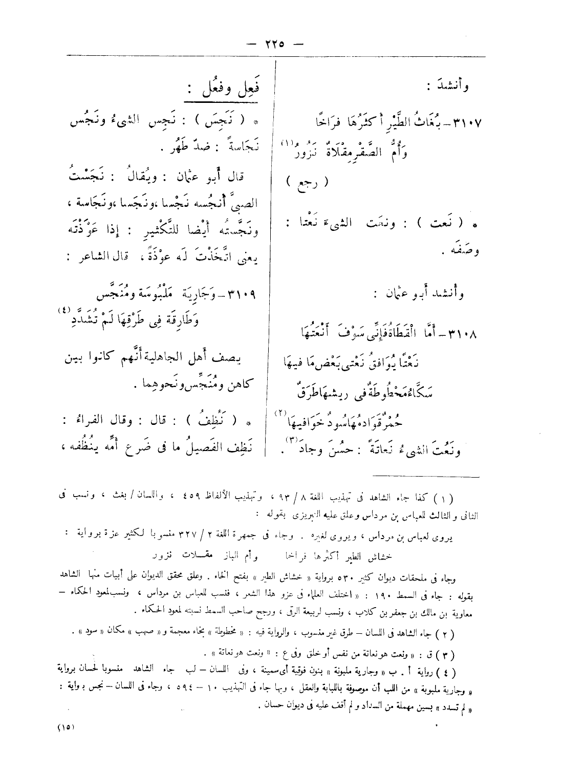 (¬1) كذا جاء الشاهد فى تهذيب اللغة 8/ 93، وتهذيب الألفاظ 459، واللسان/ بغث، ونسب فى الثانى والثالث للعباس بن مرداس وعلق عليه التبريزى بقوله: