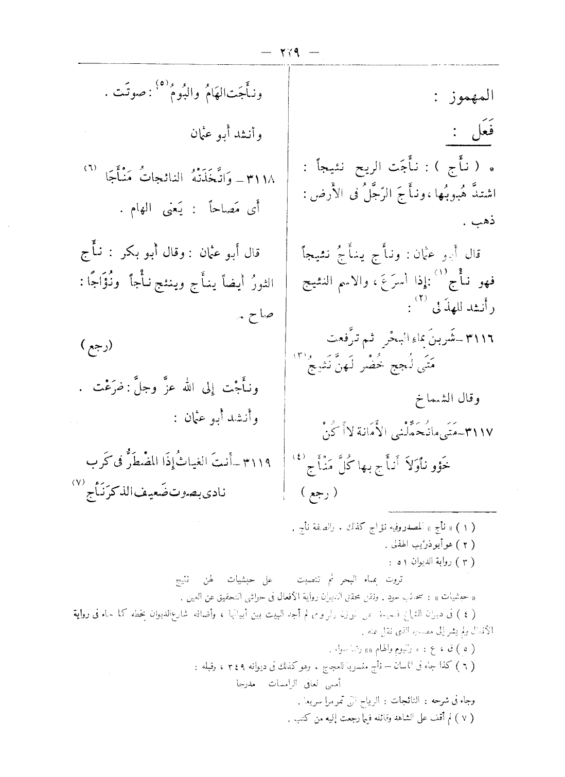 قال أبو عثمان: ونأج ينأج نئيجا فهو نأج (¬1): إذا أسرع، والاسم النئيج وأنشد للهذلى (¬2)