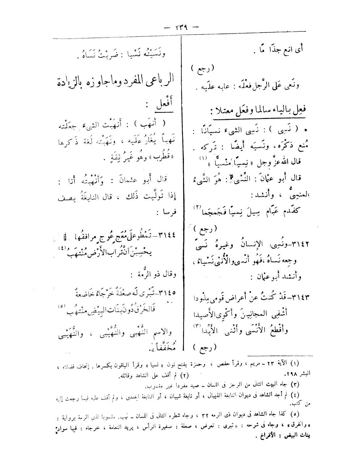 (¬5) كذا جاء الشاهد فى ديوان ذى الرمه 32، وجاء شطره الثانى فى اللسان - نهب. منسوبا لذى الرمة برواية: