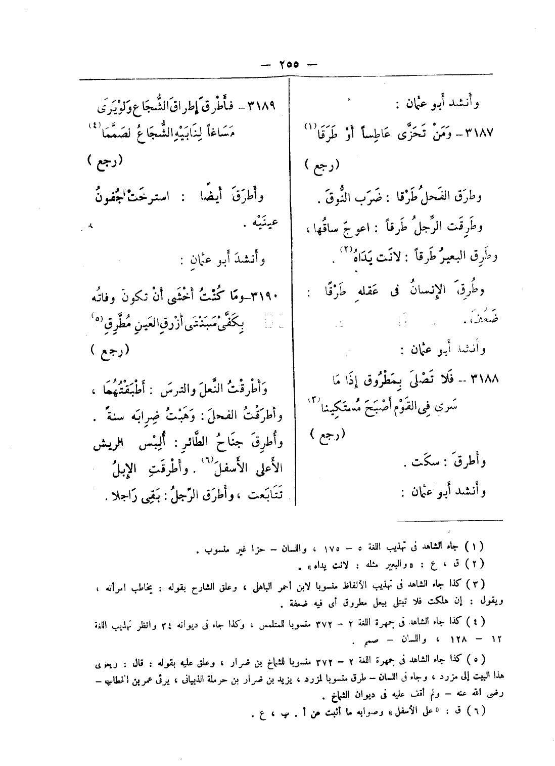 (¬5) كذا جاء الشاهد فى جمهرة اللغة 2 - 372 منسوبا للشماخ بن ضرار، وعلق عليه بقوله: قال: و؟؟؟