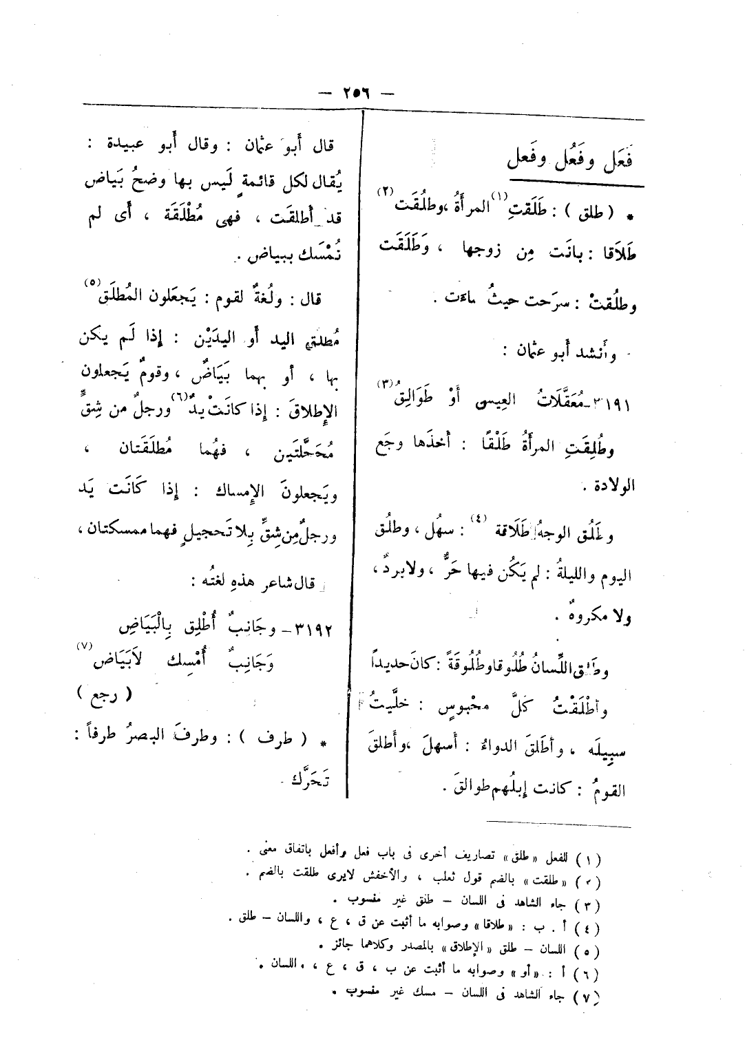 (¬1) للفعل «طلق» تصاريف أخرى فى باب فعل وأفعل باتفاق معنى.