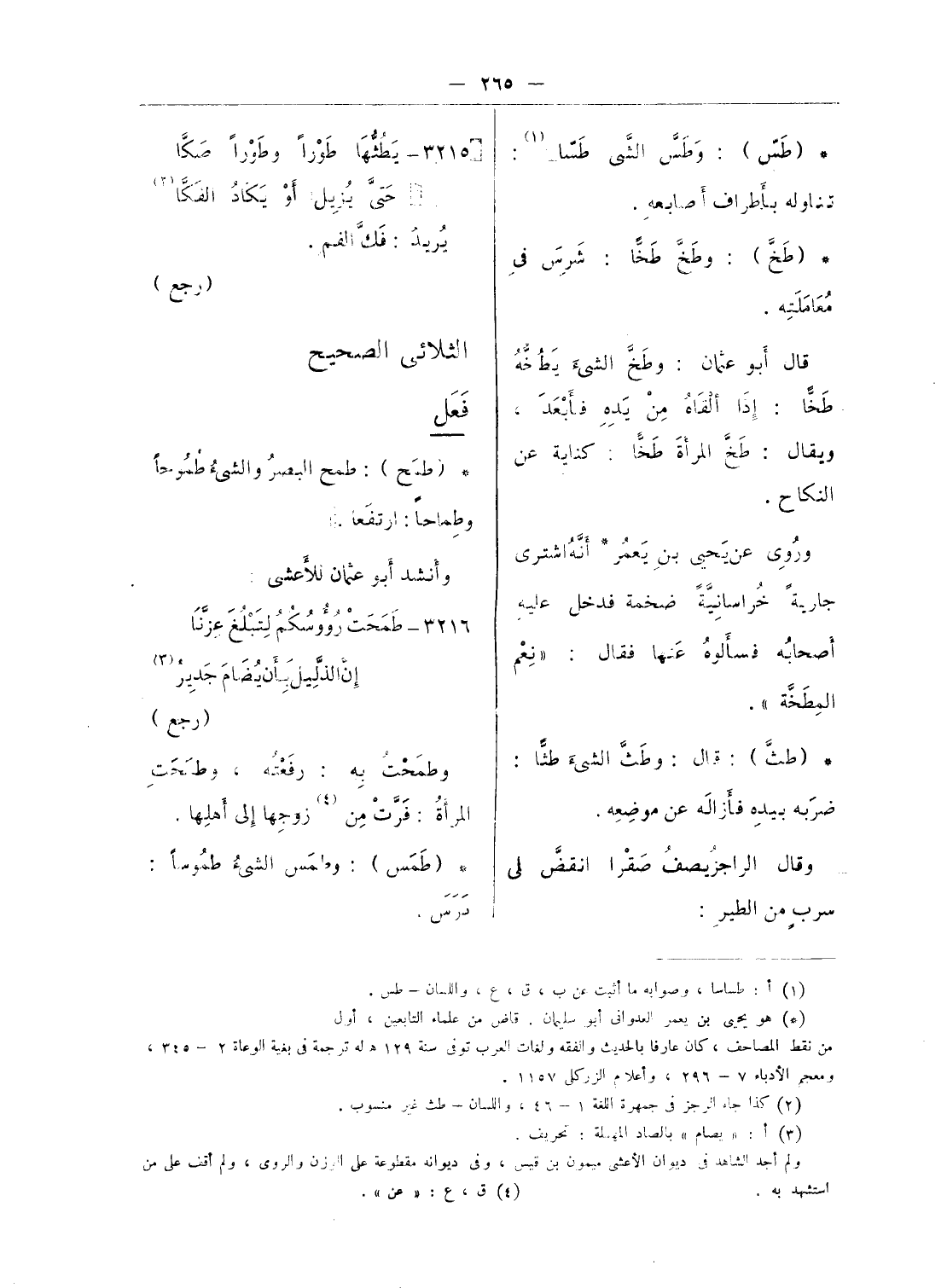 (¬3) كذا جاء الرجز فى جمهرة اللغة 1 - 46، واللسان - طث غير منسوب.