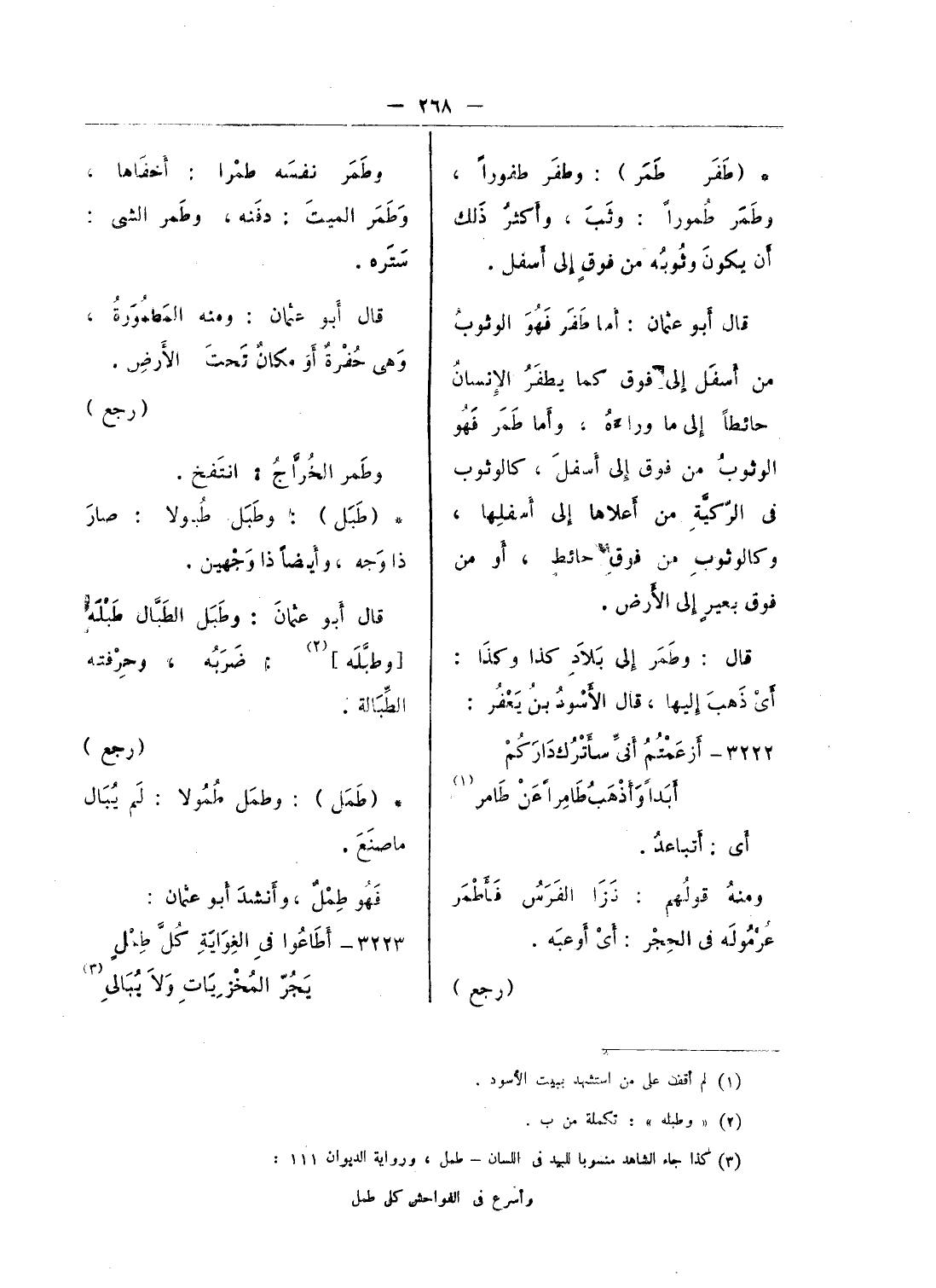 (¬3) كذا جاء الشاهد منسوبا للبيد فى اللسان - طمل، ورواية الديوان 111: