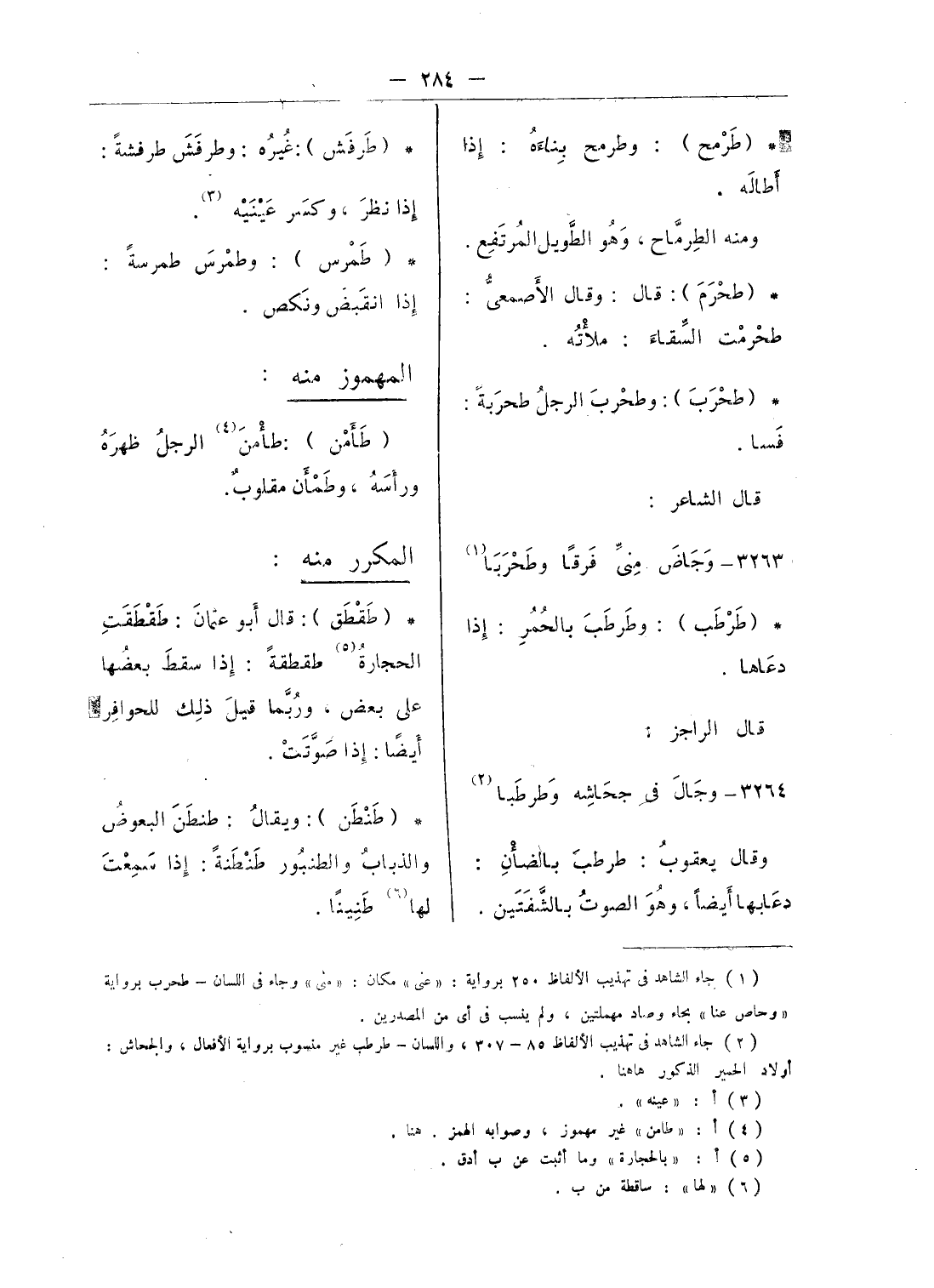 (¬4) أ: «طامن» غير مهموز، وصوابه الهمز. هنا