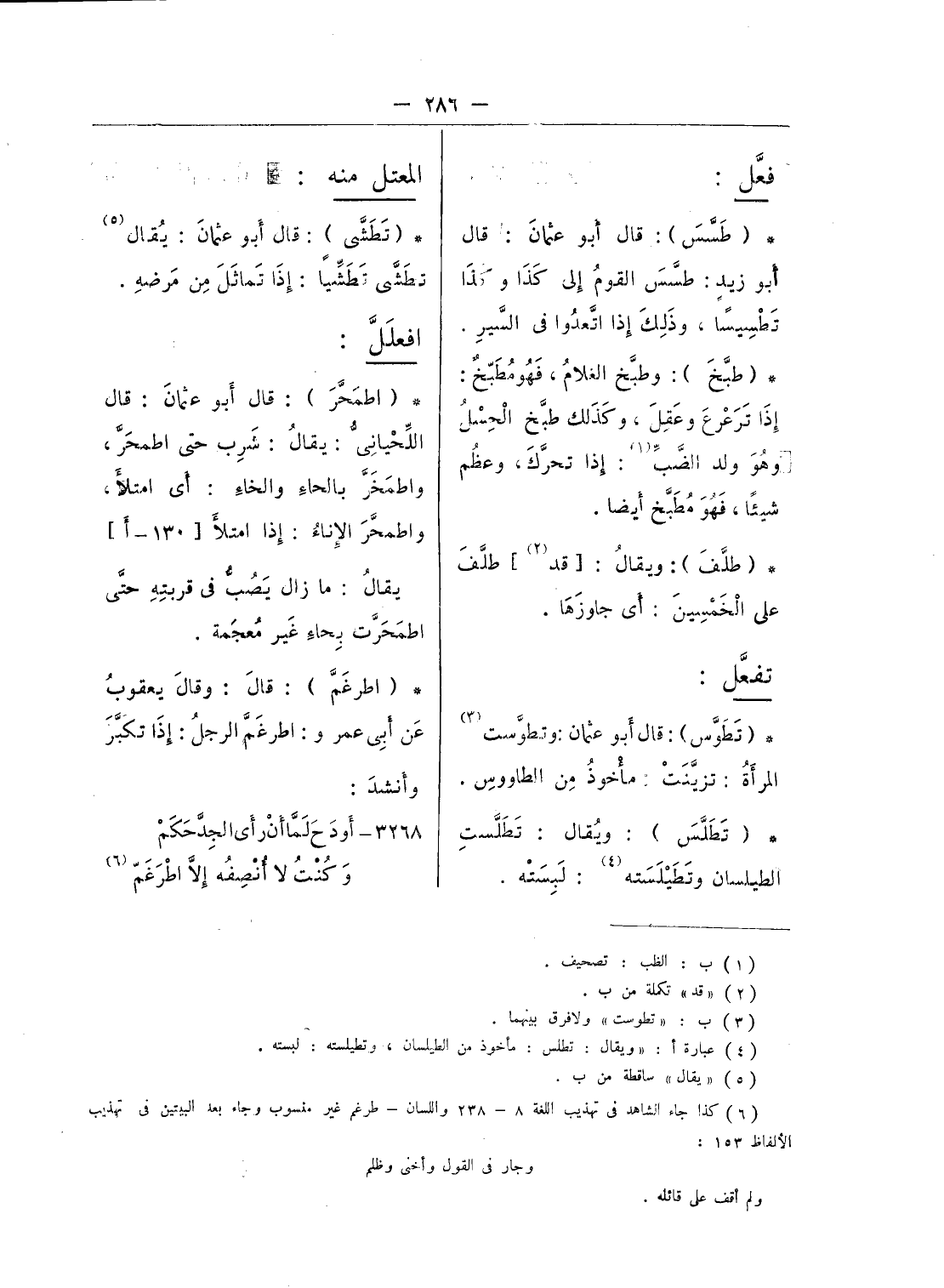 (¬4) عبارة أ: «ويقال: تطلس: مأخوذ من الطيلسان، وتطيلسته: لبسته.