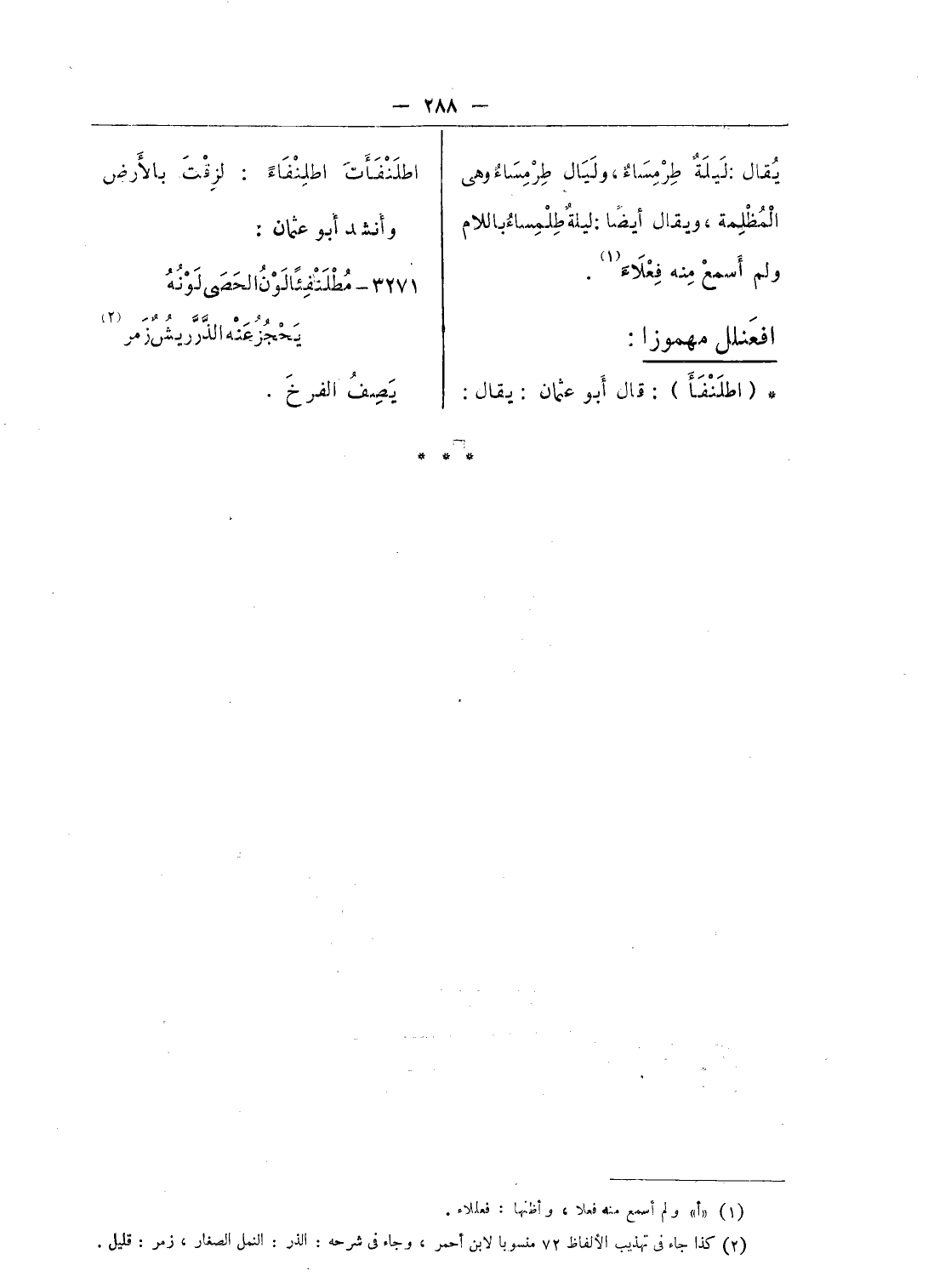 اطلنفأت اطلنفاء: لزقت بالأرض وأنشد أبو عثمان: