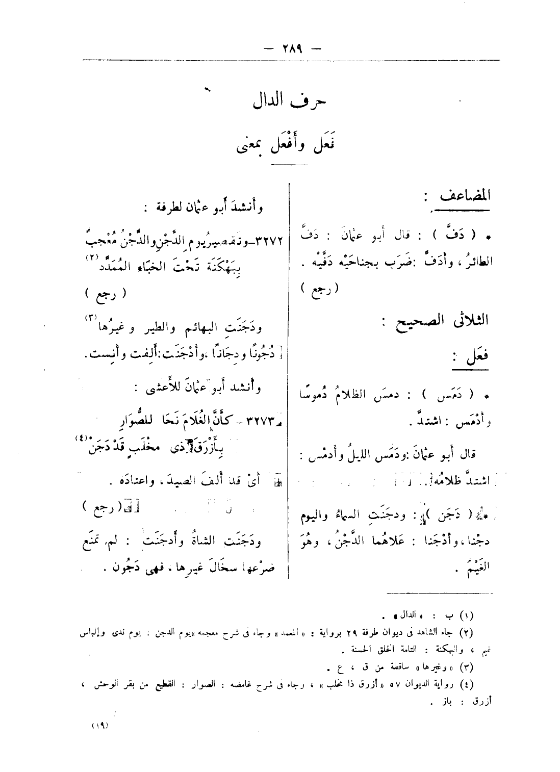 قال أبو عثمان: دفّ الطائر، وأدفّ: ضرب بجناحيه دفّيه.