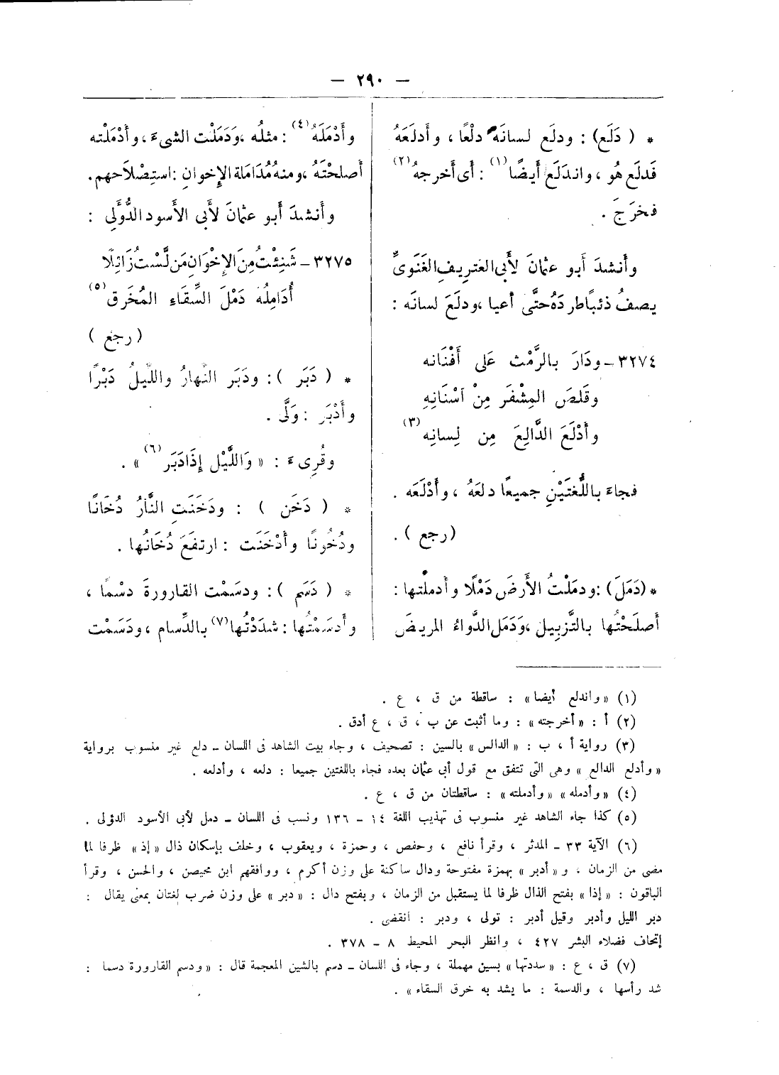 (¬5) كذا جاء الشاهد غير منسوب فى تهذيب اللغة 14 - 136 ونسب فى اللسان - دمل لأبى الأسود الدؤلى.
