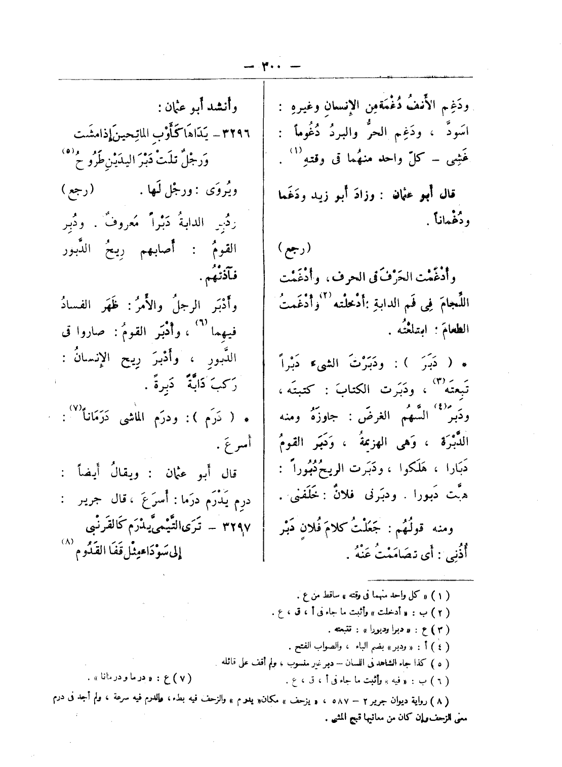 (¬8) رواية ديوان جرير 2 - 587، «يزحف» مكان «يدرم» والزحف فيه بطء، والدرم فيه سرعة، ولم أجد فى درم معنى الزحف وإن كان من معانيها قبح المش.