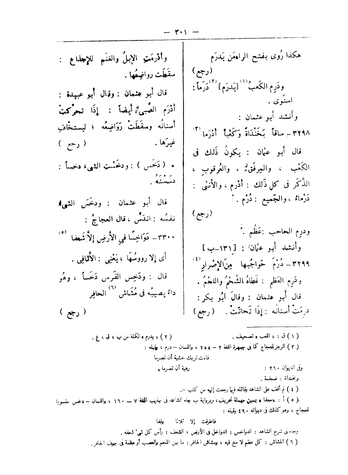 (¬3) الرجز للعجاج كما فى جمهرة اللغة 2 - 255، واللسان - درم، وقبله: