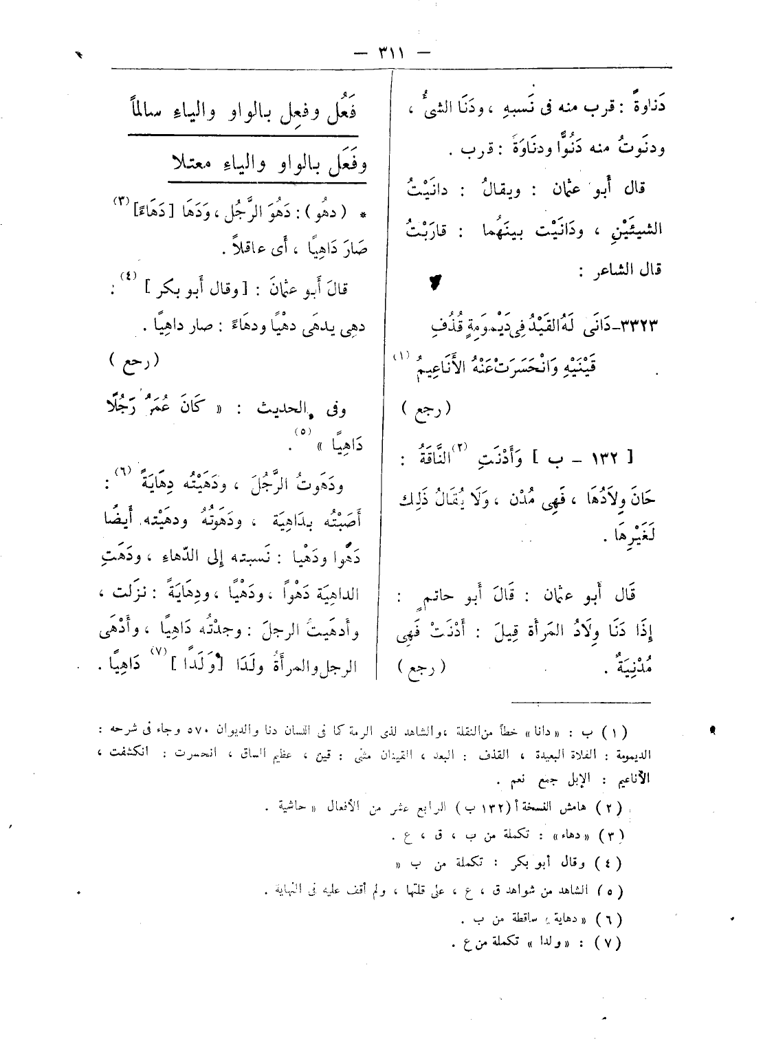 (¬1) ب: «دانا» خطأ من النقلة، والشاهد لذى الرمة كما فى اللسان دنا والديوان 570 وجاء فى شرحه: