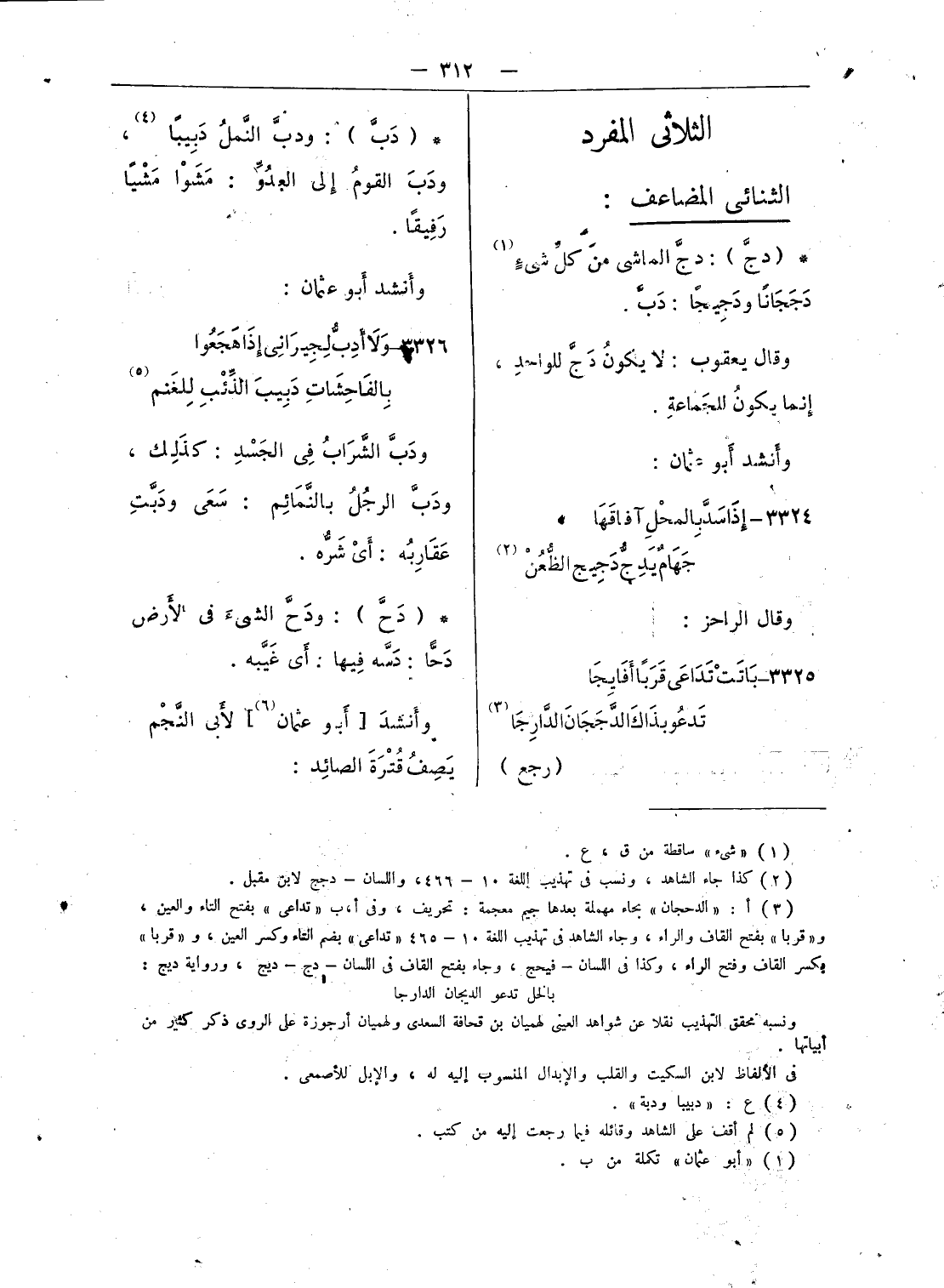 3326 - ولا أدبّ لجيرانى إذا هجعوا … بالفاحشات دبيب الذّئب للغنم (¬5)