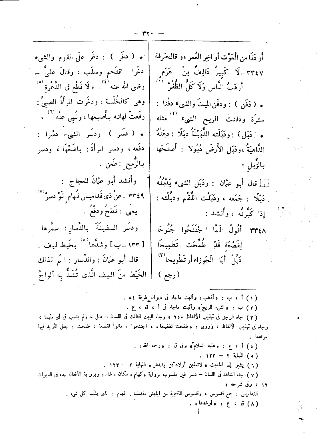 (¬3) جاء الرجز فى تهذيب الألفاظ 650، وجاء البيت الثالث فى اللسان - دبل، ولم ينسب فى أى منهما، وجاء فى تهذيب الألفاظ، وروى: «طفحت تطفيحا»، اجتنحوا: مالوا لقصعة، طمحت: جعل الثريد فيها مرتفعا.