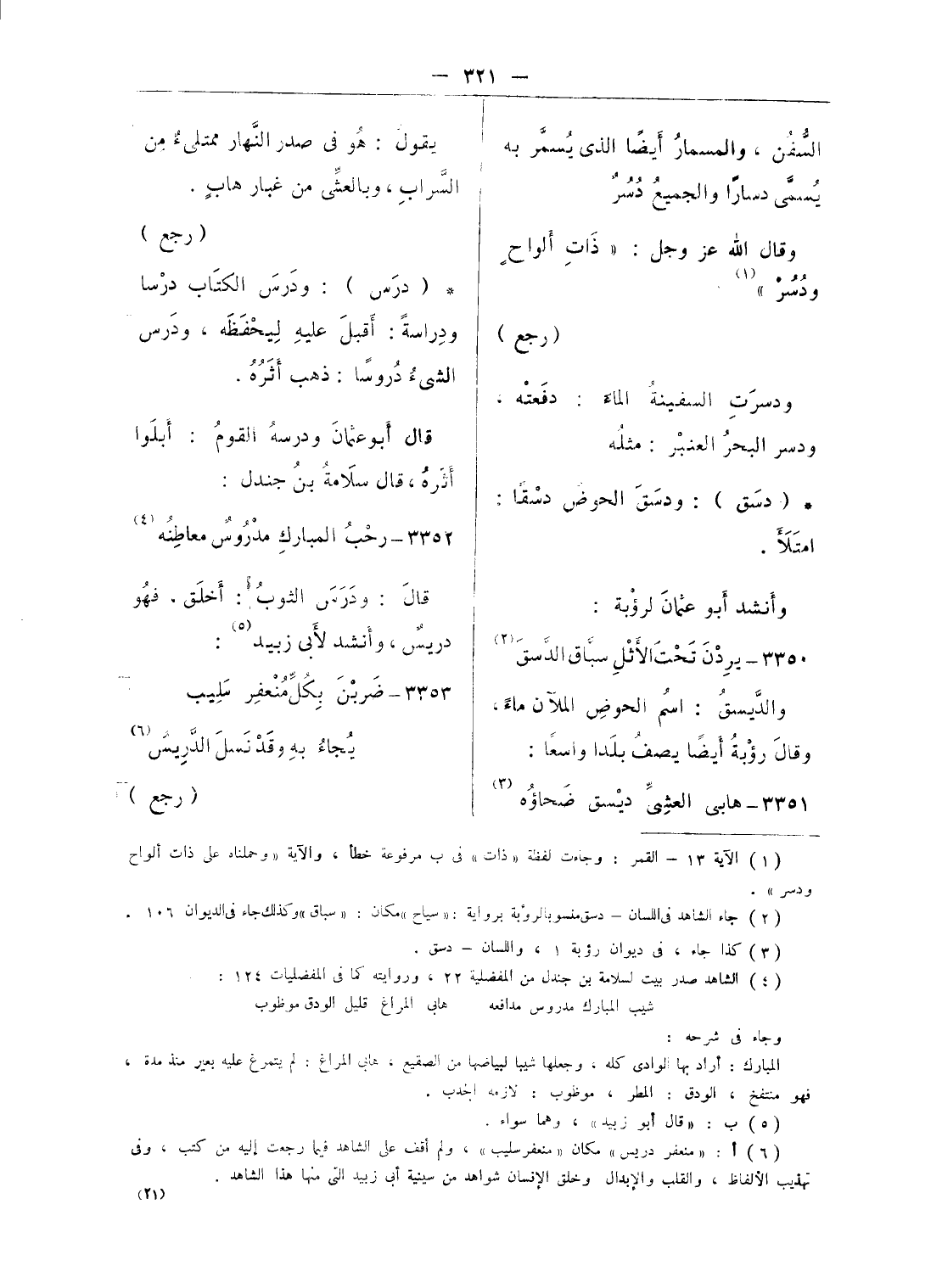 (¬6) أ: «منعفر دريس» مكان «منعفر سليب»، ولم أقف على الشاهد فيما رجعت إليه من كتب، وفى تهذيب الألفاظ، والقلب والإبدال وخلق الإنسان شواهد من سينية أبى زبيد التى منها هذا الشاهد.