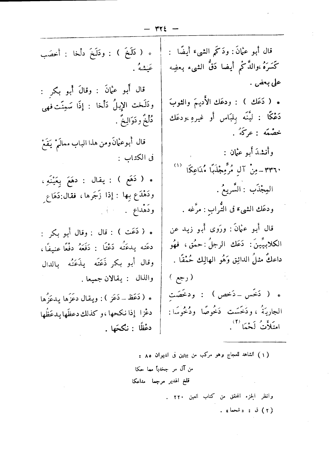 يقال: دهع بعينه، ودهدع بها: إذا زجرها، فقال: دهاع ودهداع.