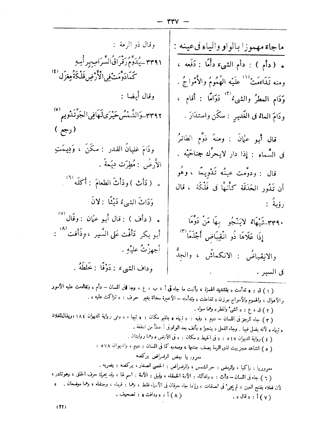 (¬1) ق: «تدأمت» بتشديد الهمزة، وأثبت ما جاء فى أ، ب، ع، وجاء فى اللسان - دأم «وتداءمت عليه الأمور والأهوال، والهموم والأمواج بوزن «تفاعلت» وتدأمته - الأخيرة معداة بغير حرف: «تراكت عليه».