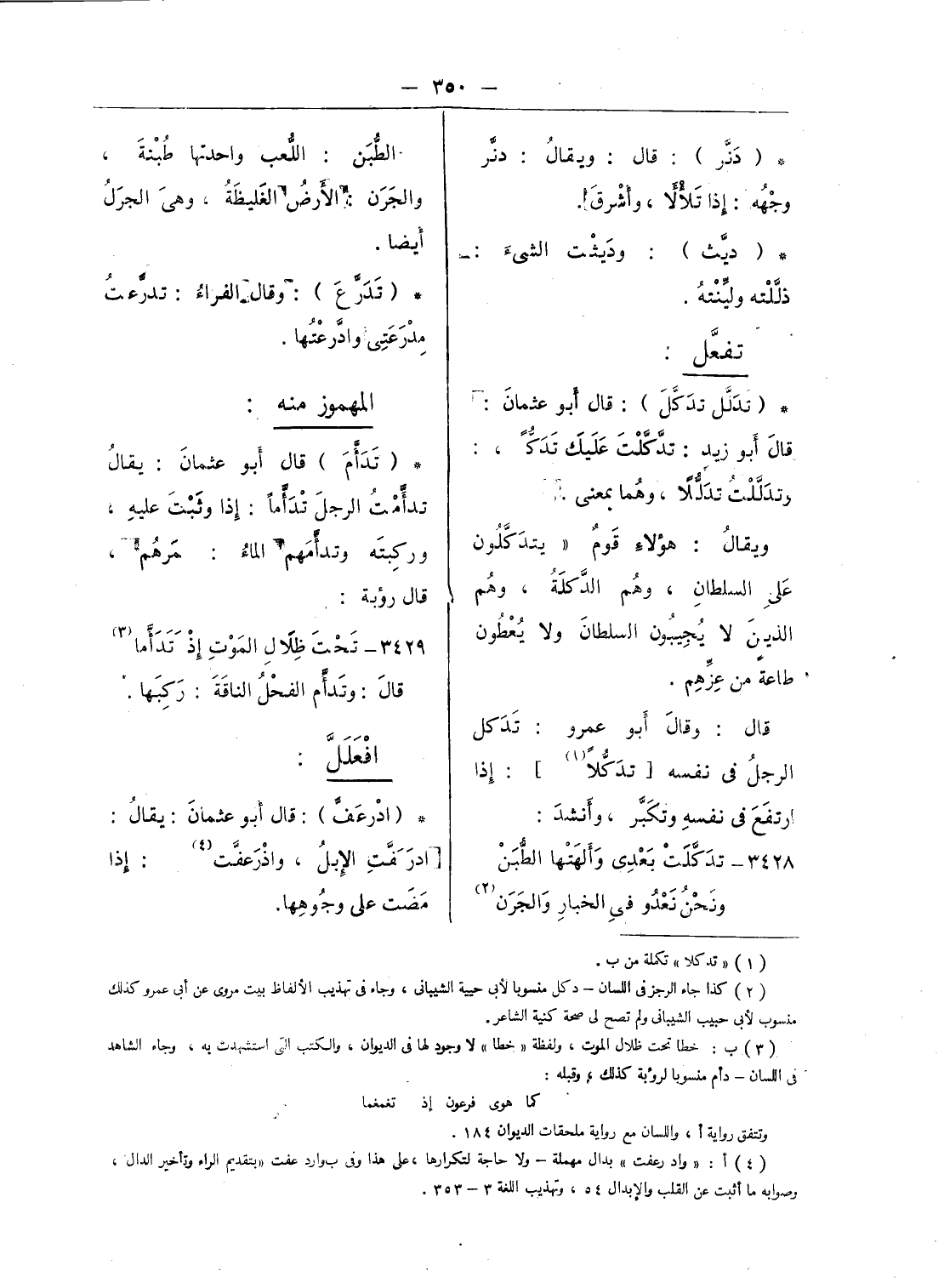 (¬2) كذا جاء الرجز فى اللسان - دكل منسوبا لأبى حيية الشيبانى، وجاء فى تهذيب الألفاظ بيت مروى عن أبى عمرو كذلك منسوب لأبى حبيب الشيبانى ولم تصح لى صحة كنية الشاعر.