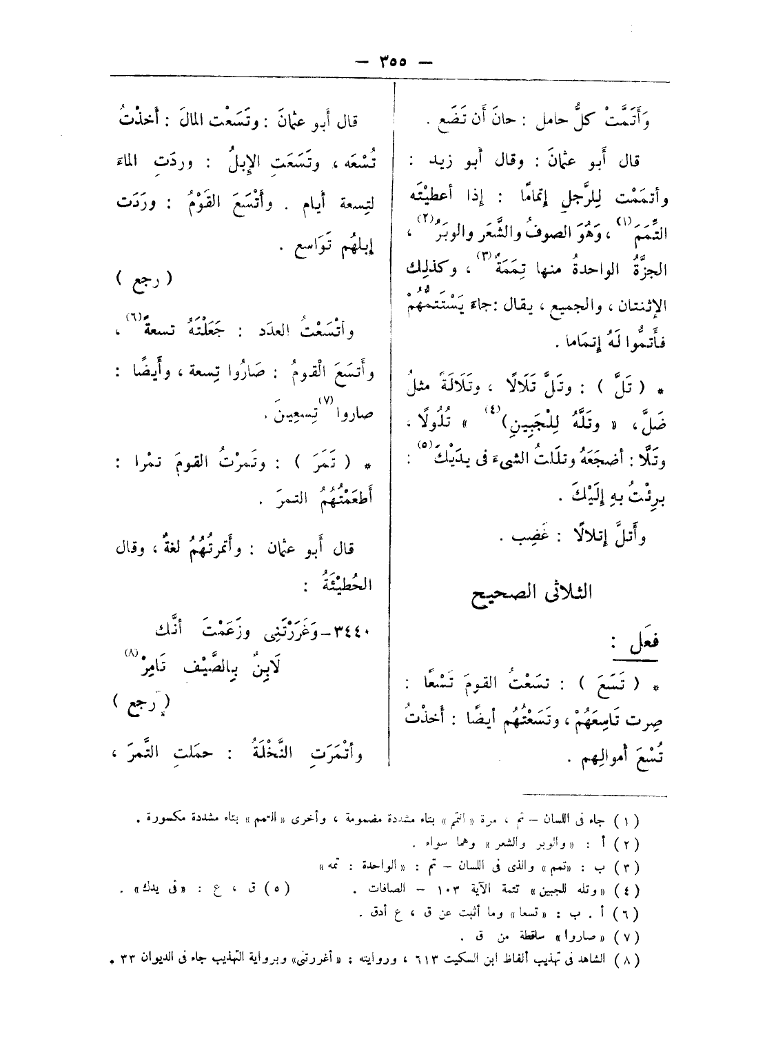 (¬1) جاء فى اللسان - تم، مرة «التمم» بتاء مشددة مضمومة، وأخرى «التمم» بتاء مشددة مكسورة.