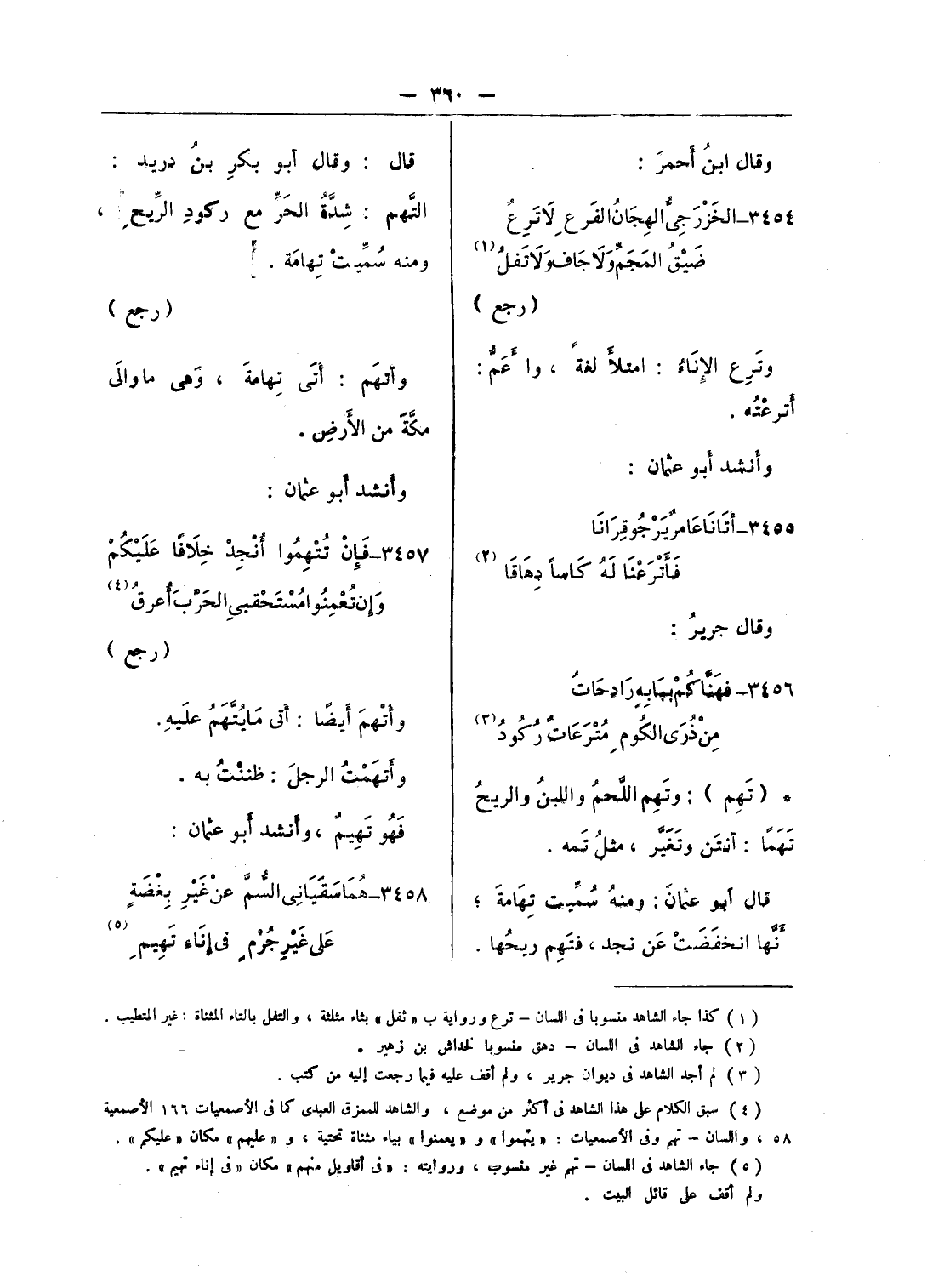(¬4) سبق الكلام على هذا الشاهد فى أكثر من موضع، والشاهد للممزق العبدى كما فى الأصمعيات 166 الأصمعية 58، واللسان - تهم وفى الأصمعيات: «يتهموا» و «يعمنوا» بياء مثناة تحتية، و «عليهم» مكان «عليكم».