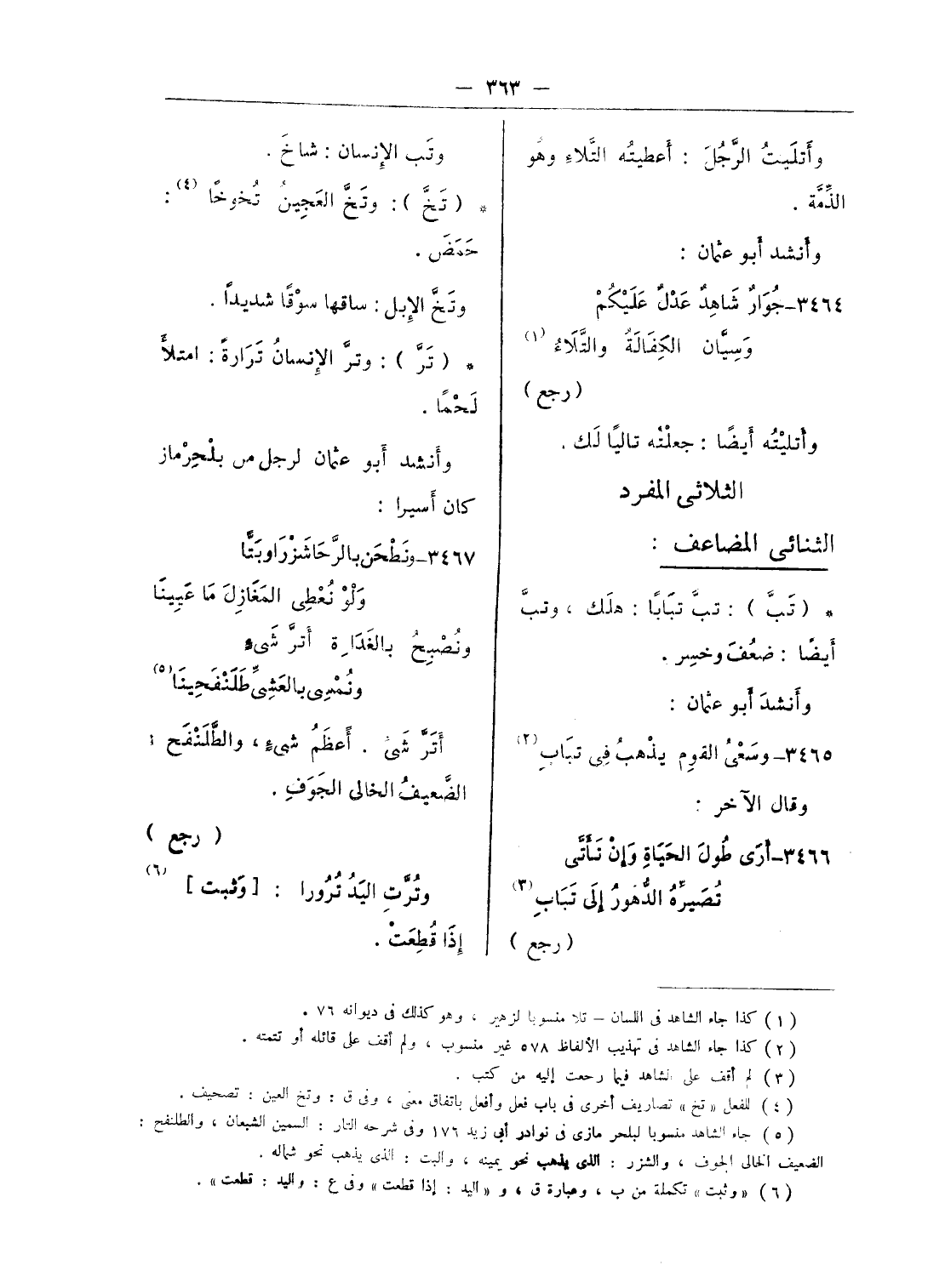 3466 - أرى طول الحياة وإن تأتّى … تصيّره الدّهور إلى تباب (¬3)