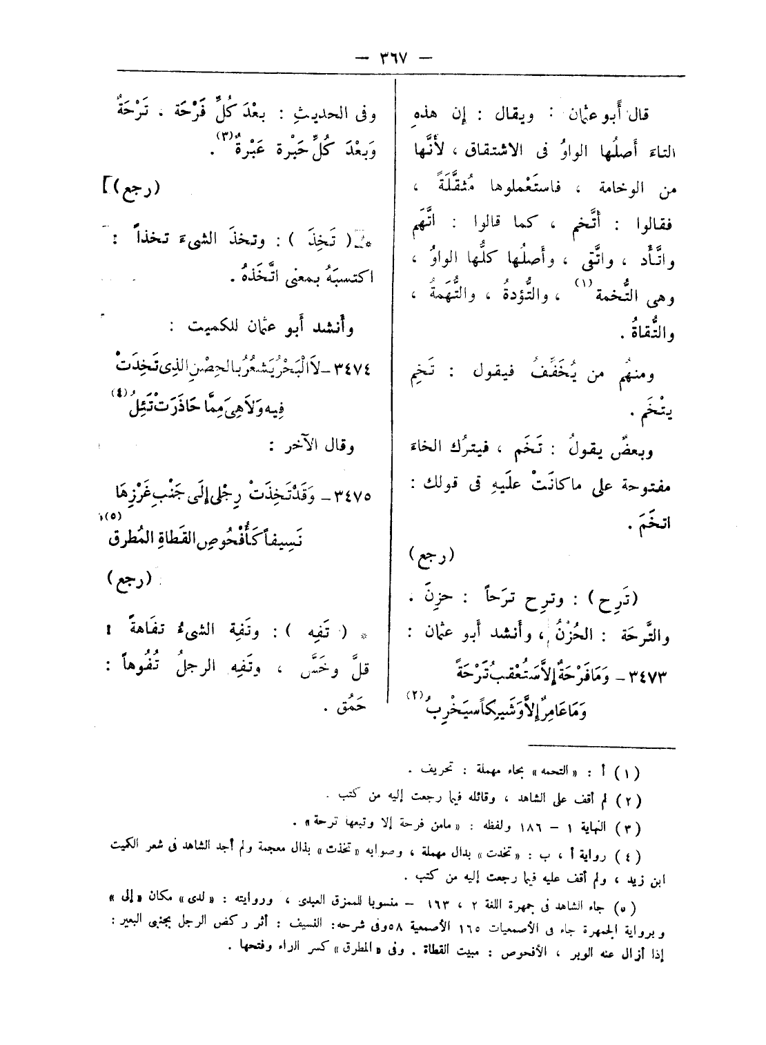 (¬4) رواية أ، ب: «تخذت» بدال مهملة، وصوابه «تخذت» بذال معجمة ولم أجد الشاهد فى شعر الكميت ابن زيد، ولم أقف عليه فيما رجعت إليه من كتب.
