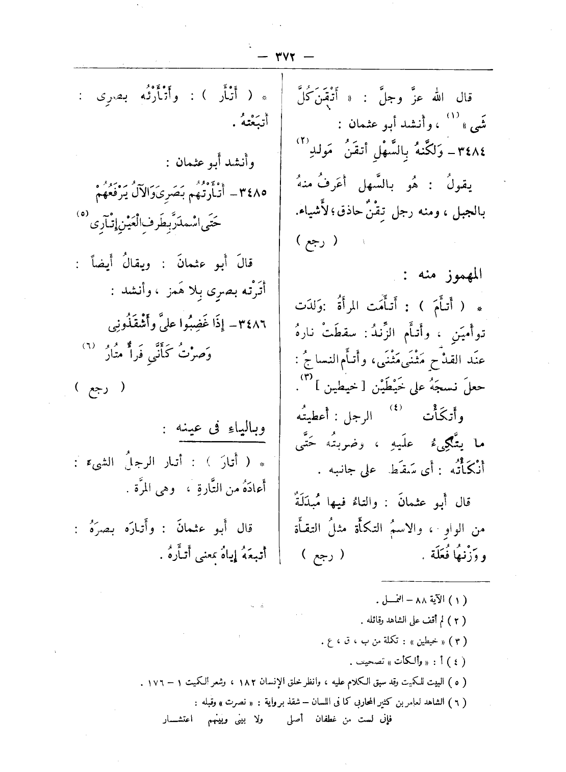 قال الله عزّ وجلّ: «أَتْقَنَ كُلَّ شَيْءٍ» (¬1)، وأنشد أبو عثمان: