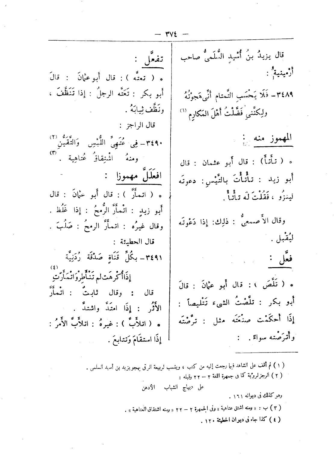 3490 - فى عتهىّ اللّبس والتّقيّن (¬2) … ومنه اشتقاق عتاهية (¬3)