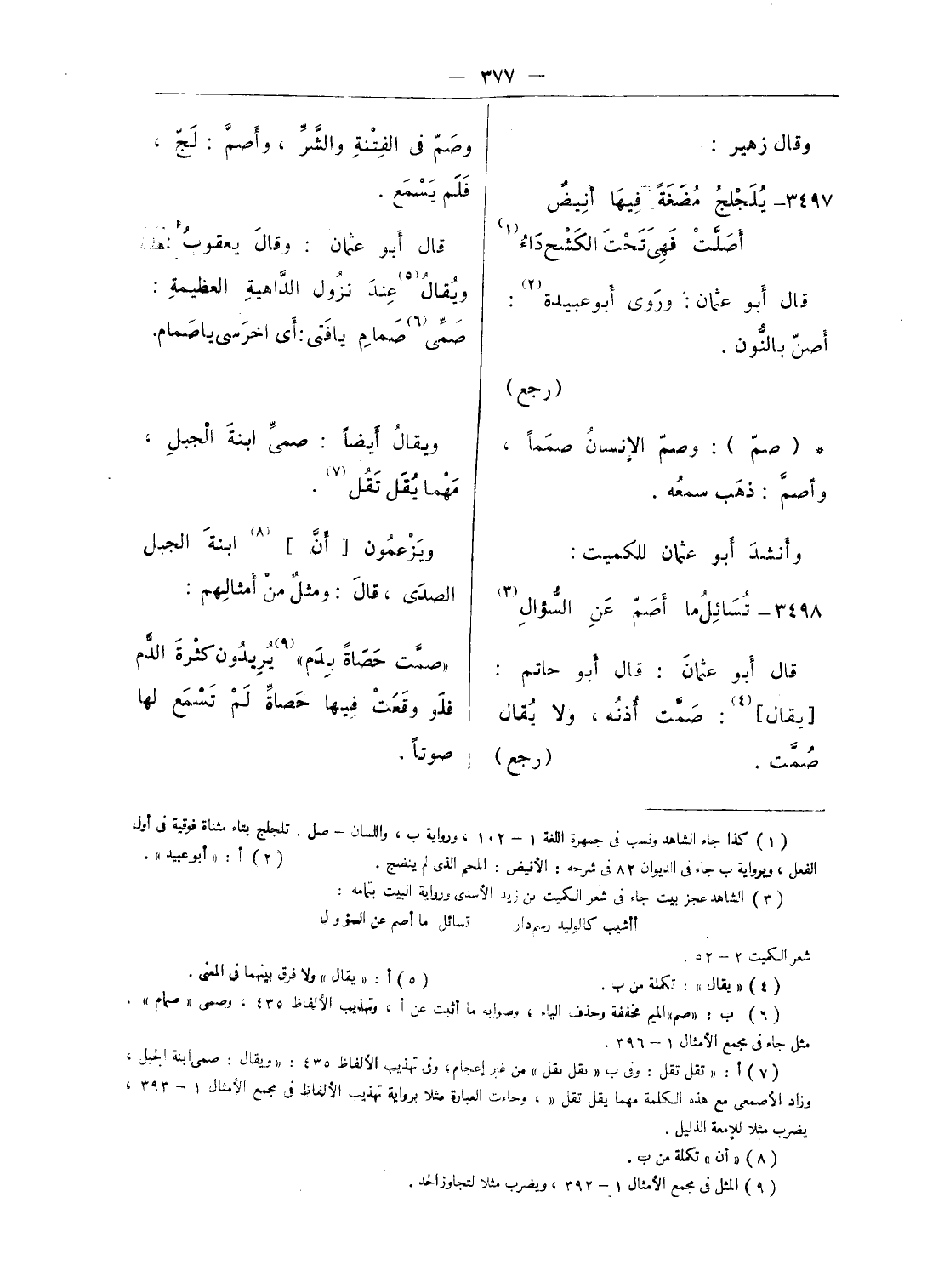 «صمّت حصاة بدم» (¬9) يريدون كثرة الدّم فلو وقعت فيها حصاة لم تسمع لها صوتا.