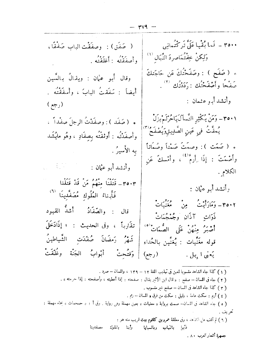(¬5) جاء الشاهد فى اللسان - صمت برواية «معنيات» بعين مهملة وهى رواية. وفى أ: «حمحمات» محاء مهملة: