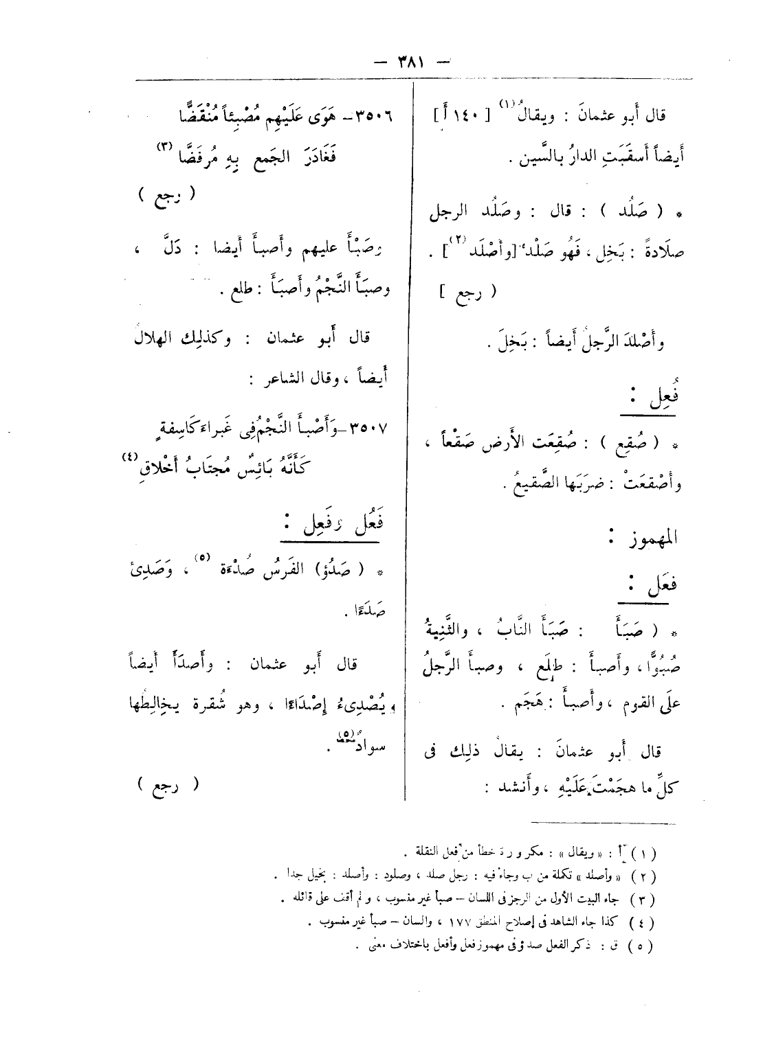 (¬5) ق: ذكر الفعل صدؤ فى مهموز فعل وأفعل باختلاف معنى.