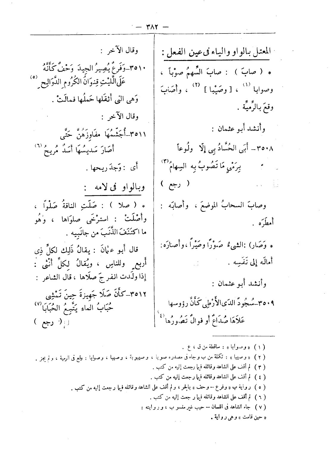 (¬2) «وصيبا»! تكملة من ب وجاء فى مصدره صوبا، وصيبوبة، وصيبا، وصوابا: وقع فى الرمية، ولم يجز.