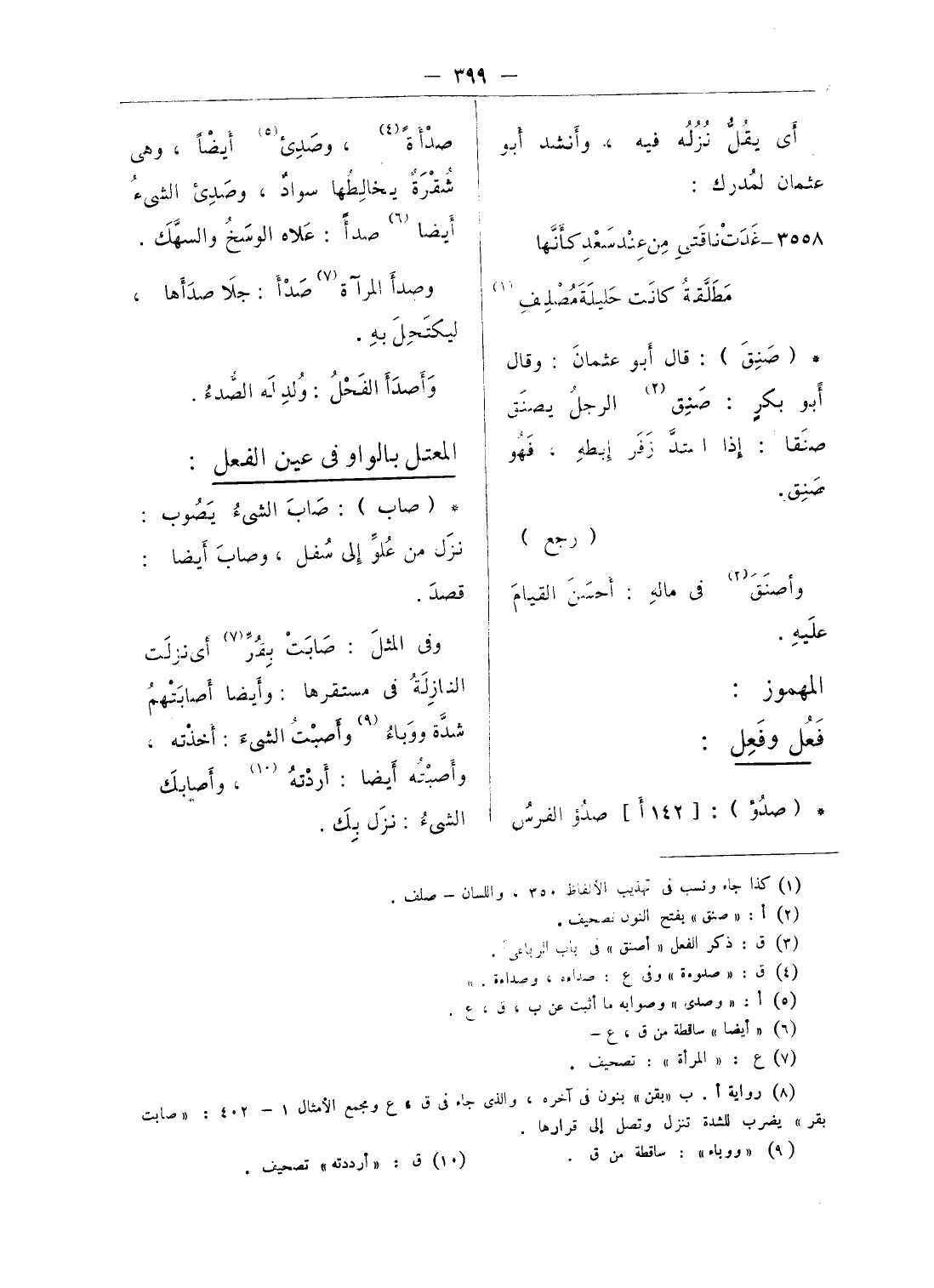 (¬3) ق: ذكر الفعل «أصنق» فى باب الرباعى.