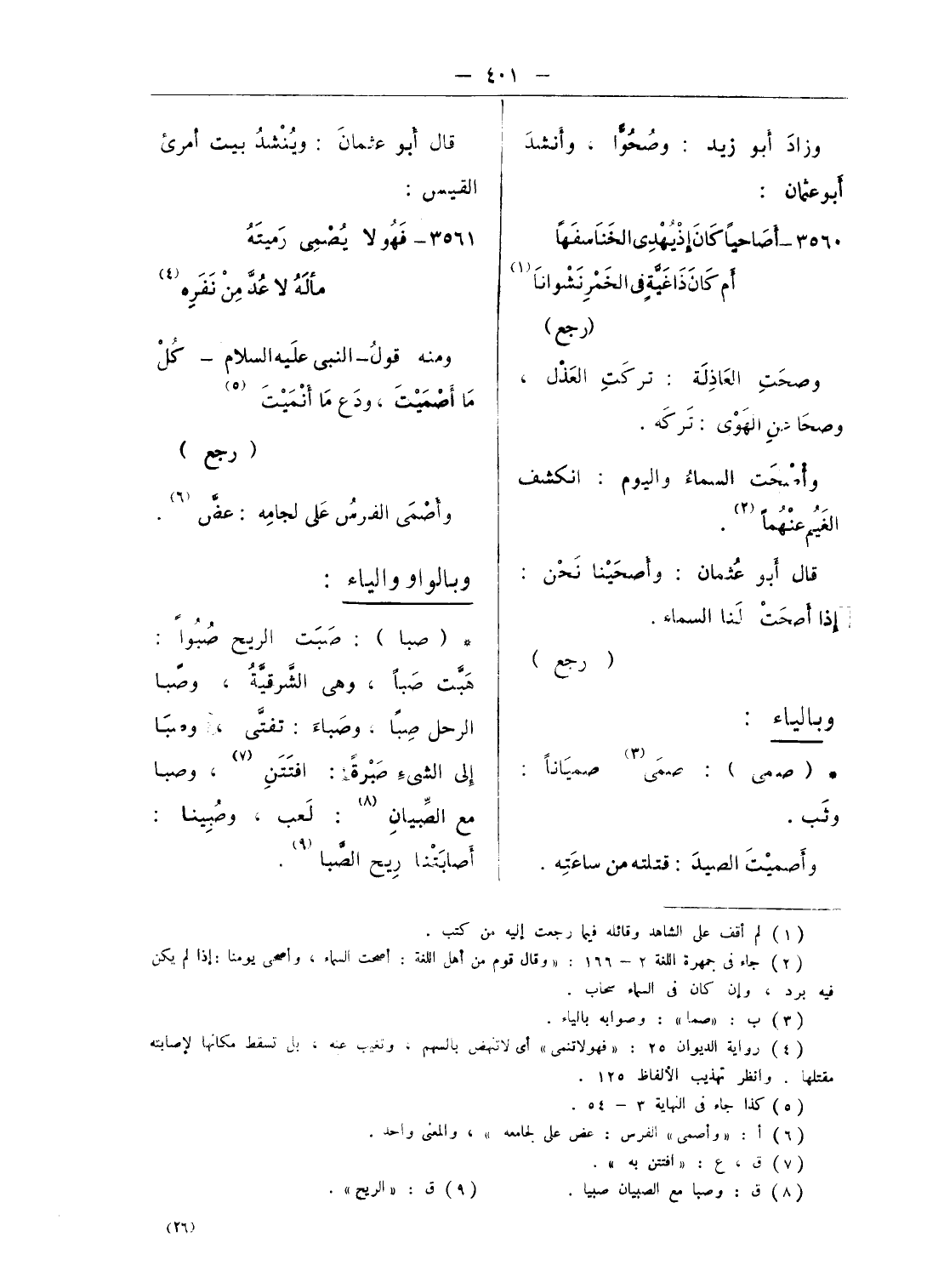 هبّت صبا، وهى الشّرقيّة، وصبا الرحل صبا، وصباء: تفتّى، وصبا إلى الشئ صبرة: افتتن (¬7)، وصبا مع الصّبيان (¬8): لعب، وصبينا:
