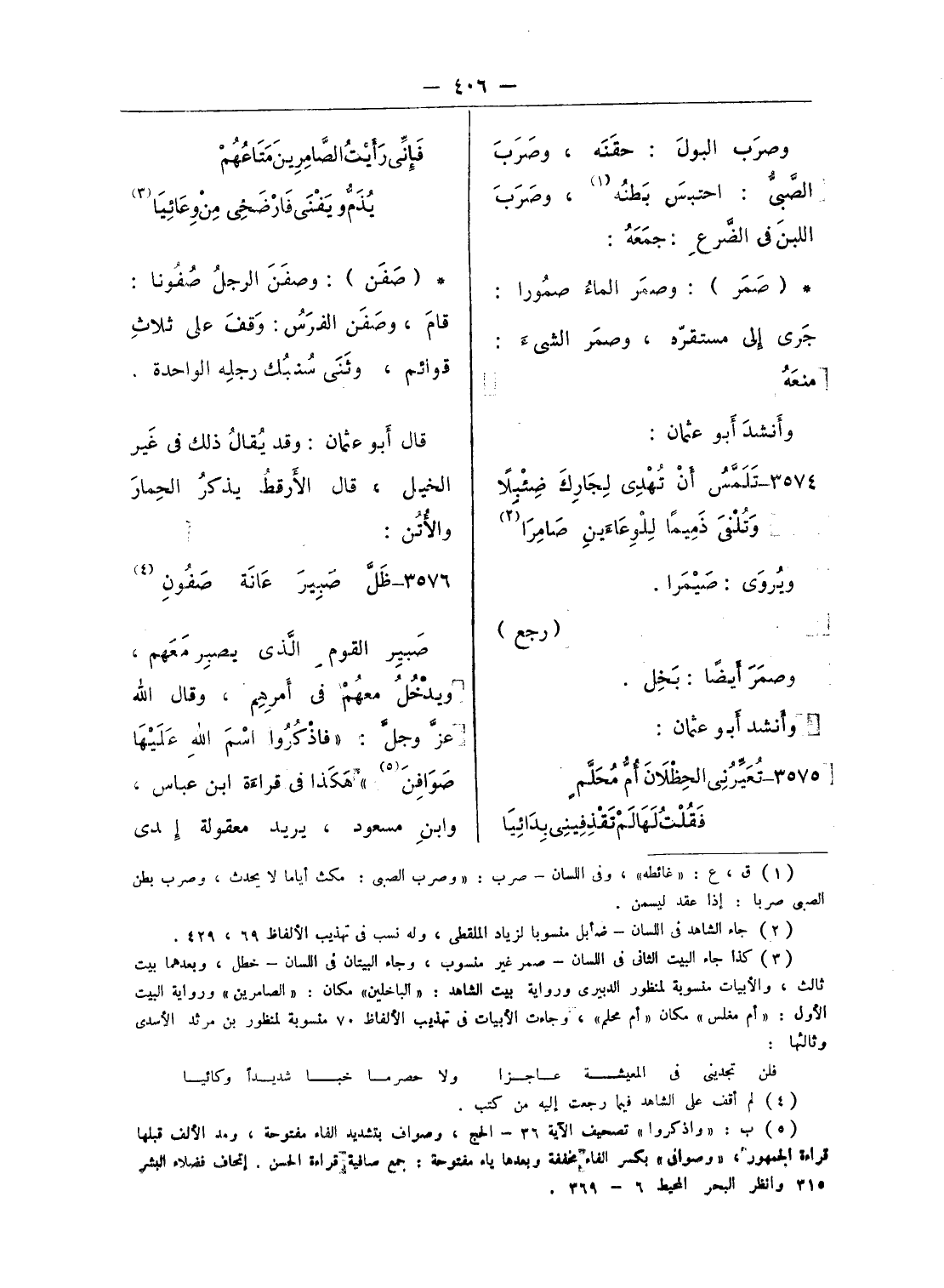 صبير القوم الّذى يصبر معهم، ويدخل معهم فى أمرهم، وقال الله عزّ وجلّ: «فَاذْكُرُوا اسْمَ اللَّهِ عَلَيْها صَوافَّ (¬5)» هكذا فى قراءة ابن عباس، وابن مسعود، يريد معقولة إحدى