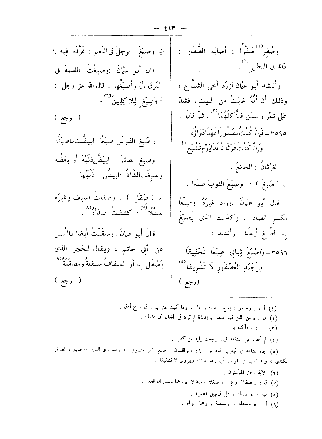 قال أبو عثمان: وصبغت اللقمة فى المرق، وأصبغها. قال الله عز وجل: