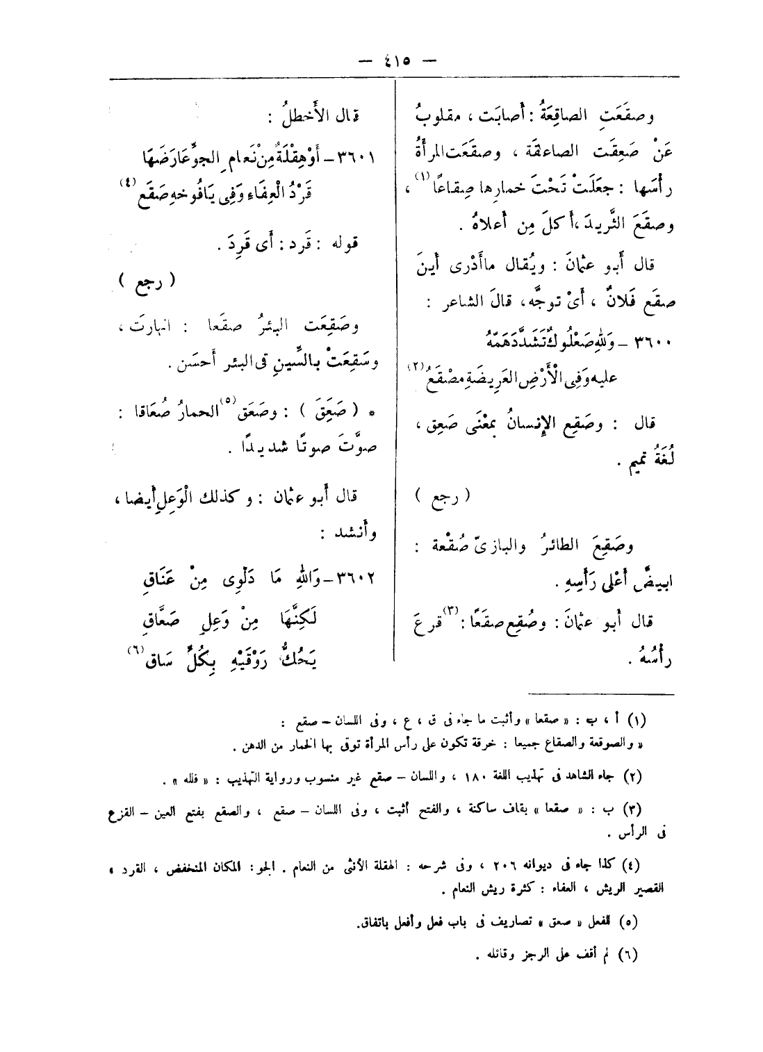 (¬3) ب: «صقعا» بقاف ساكنة، والفتح أثبت، وفى اللسان - صقع، والصقع بفتح العين - القزع فى الرأس.