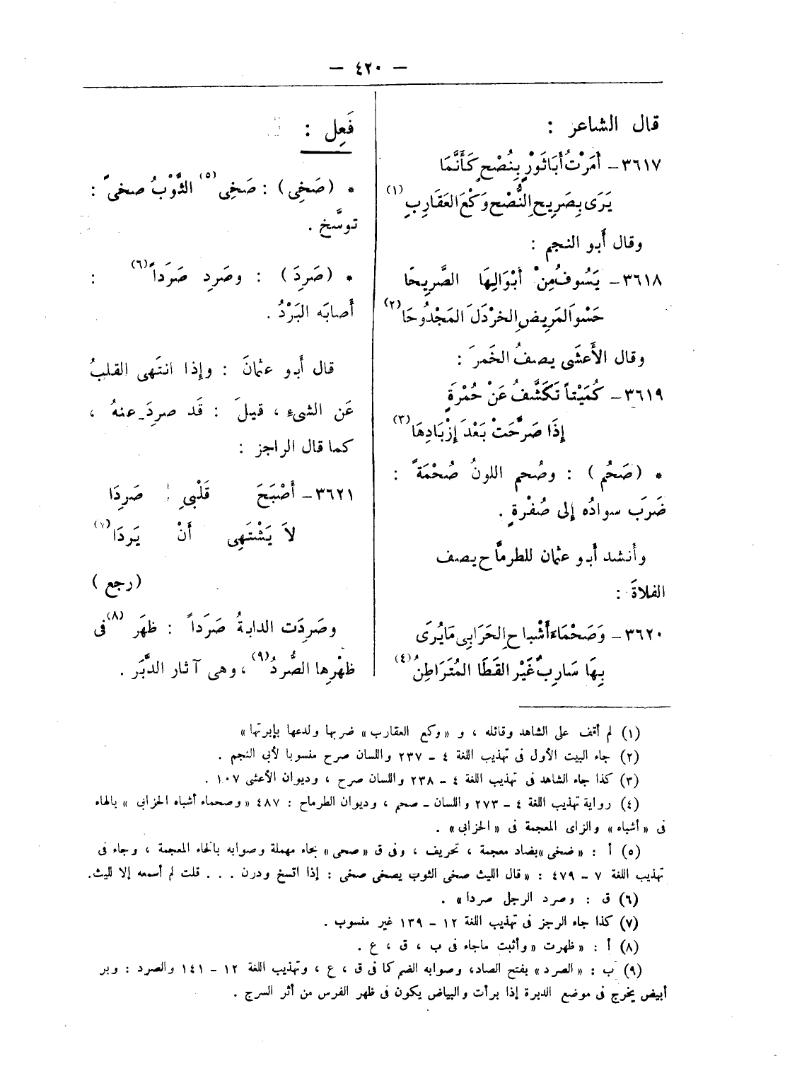 (¬3) كذا جاء الشاهد فى تهذيب اللغة 4 - 238 واللسان صرح، وديوان الأعشى 107.