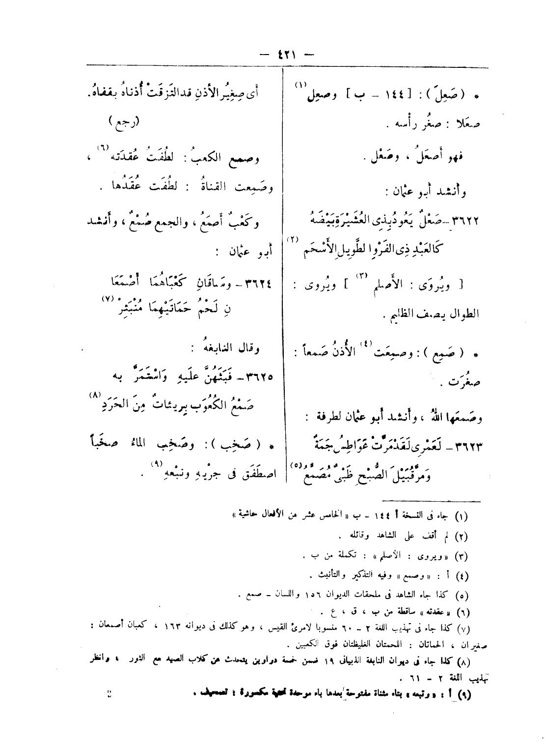 (¬5) كذا جاء الشاهد فى ملحقات الديوان 156 واللسان - صمع.