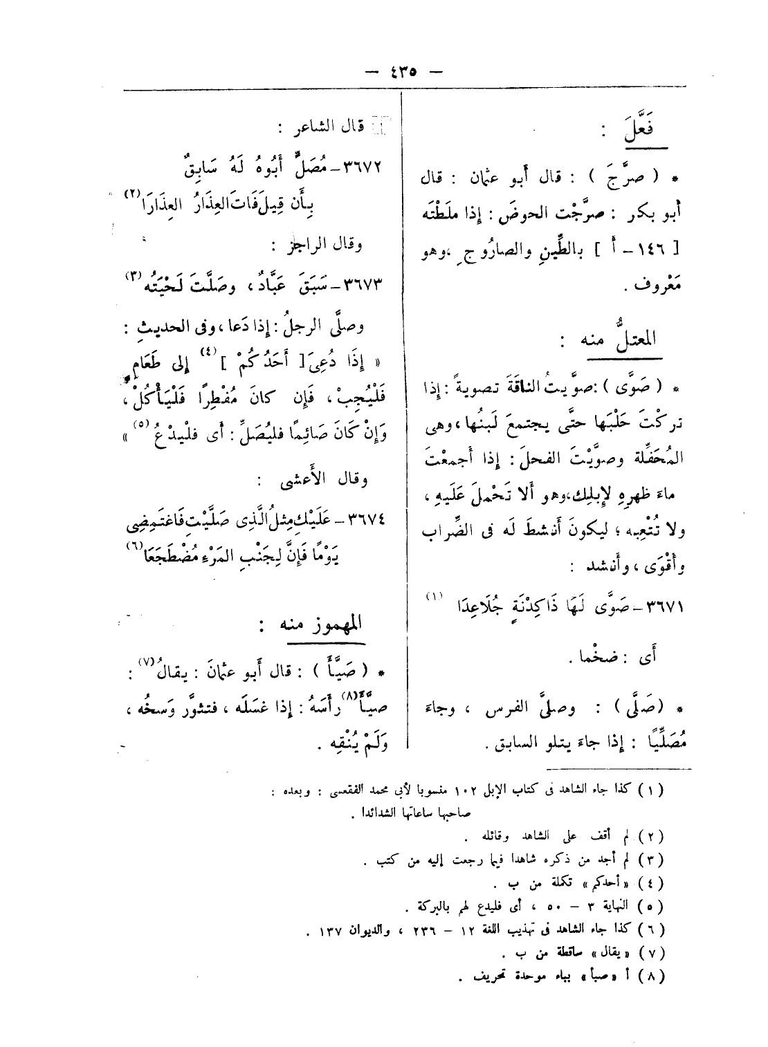 (¬1) كذا جاء الشاهد فى كتاب الإبل 102 منسوبا لأبى محمد الفقعسى: وبعده:
